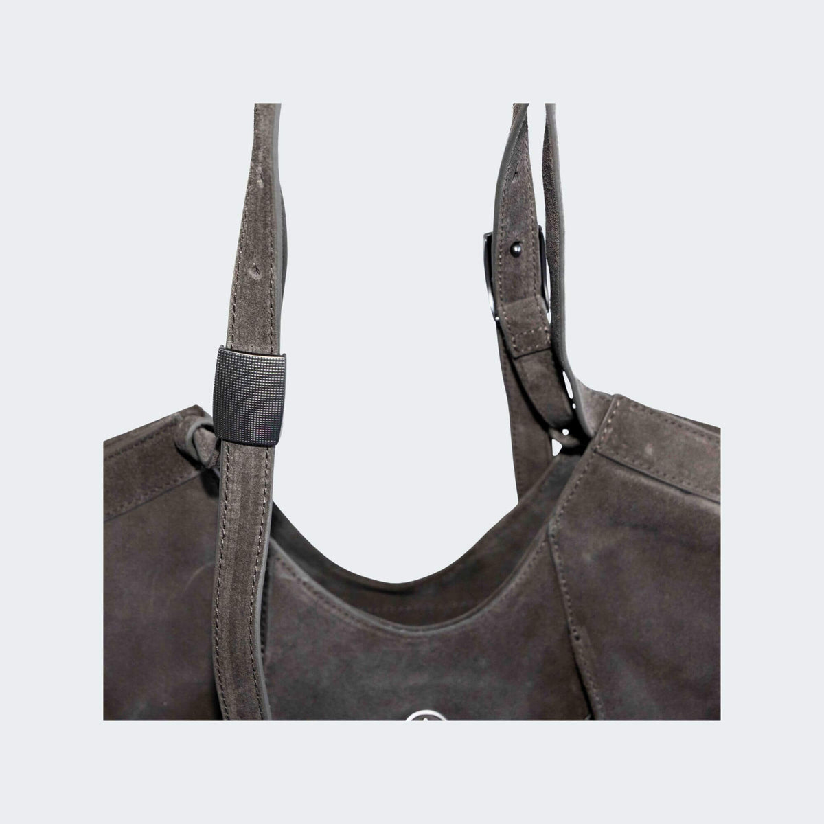 "Scopri l'eleganza senza tempo della nostra borsa a spalla in morbida pelle scamosciata grigio scuro. Questo accessorio combina stile e funzionalità: la texture suede di alta qualità offre un look sofisticato, perfetto per ogni stagione.
