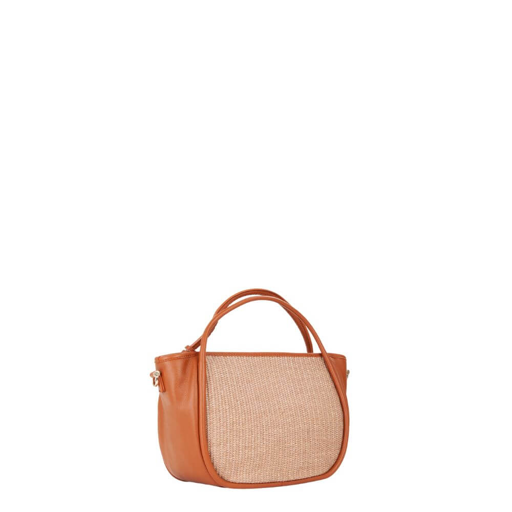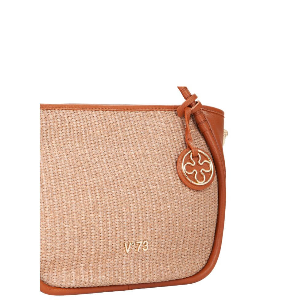 Questa borsa V 73 FLAMINIA è realizzata in rafia naturale, con eleganti manici e rifiniture in cuoio. È dotata di una tracolla con zip e scomparti interni per una maggiore praticità. Perfetta sia come borsa a mano che a tracolla per un look versatile e alla moda.