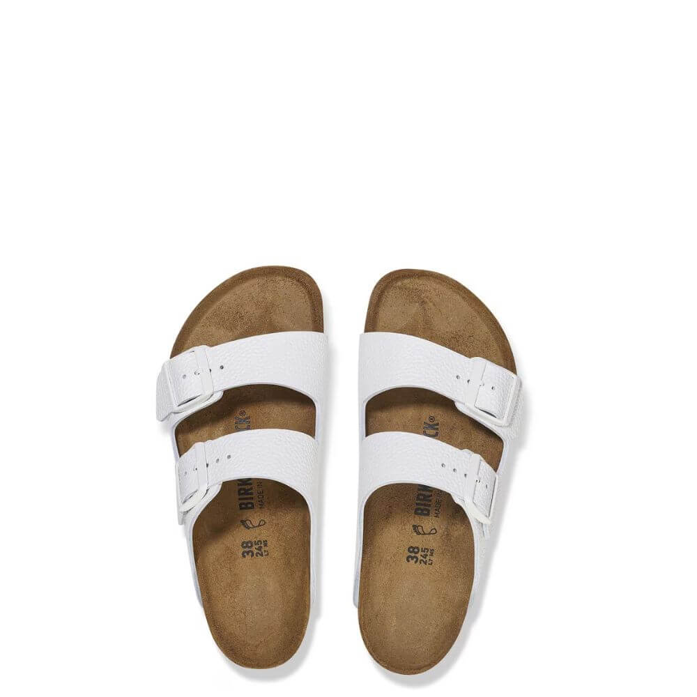 Le ciabatta Birkenstock Arizona per donna, modello 1025061 in bianco, unisce comfort e stile senza tempo. Dotata di suola anatomica in sughero e lattice, offre un supporto ottimale per il piede, favorendo una camminata naturale e confortevole. Il design a doppia fibbia permette una regolazione personalizzata, garantendo stabilità e adattabilità. Perfetta per la primavera-estate 2025, questa calzatura è ideale per chi cerca qualità e funzionalità in ogni passo.