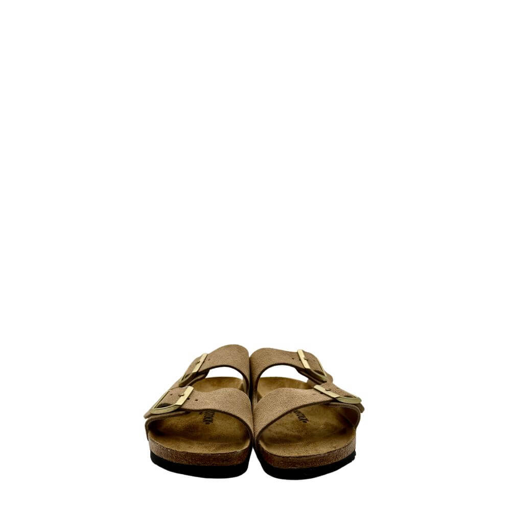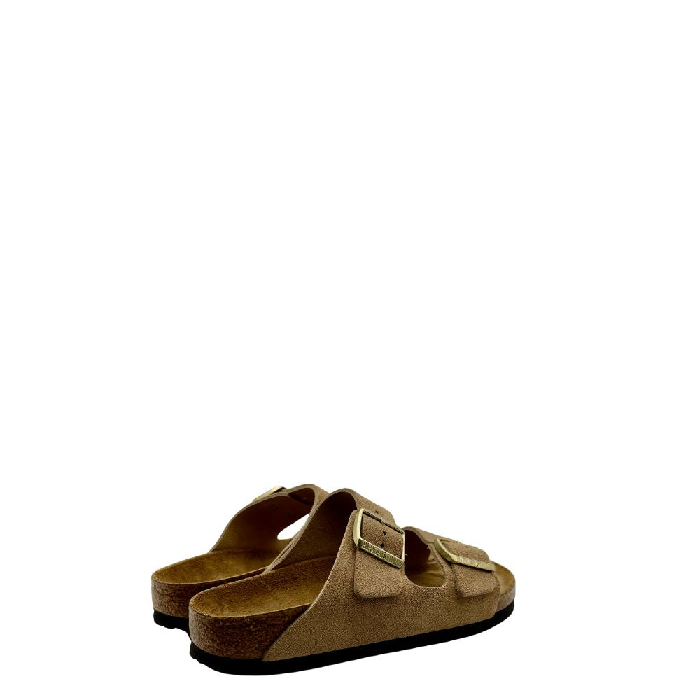 Arizona ciabatta realizzata in suede beige con doppia fibbia e plantare anatomico. Facile da abbinare con ogni outfit per sentirti a tuo agio in ogni situazione