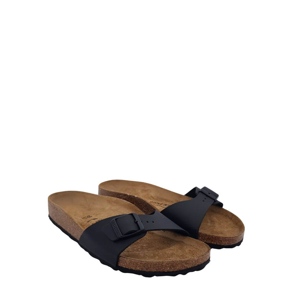 Scopri il perfetto mix di comfort e stile con le ciabatte Birkenstock Madrid. Questo classico modello, proposto nella versione nera con fibbia per la Primavera/Estate 2024, è un must-have per chi cerca un'alternativa elegante e confortevole per l'estate.