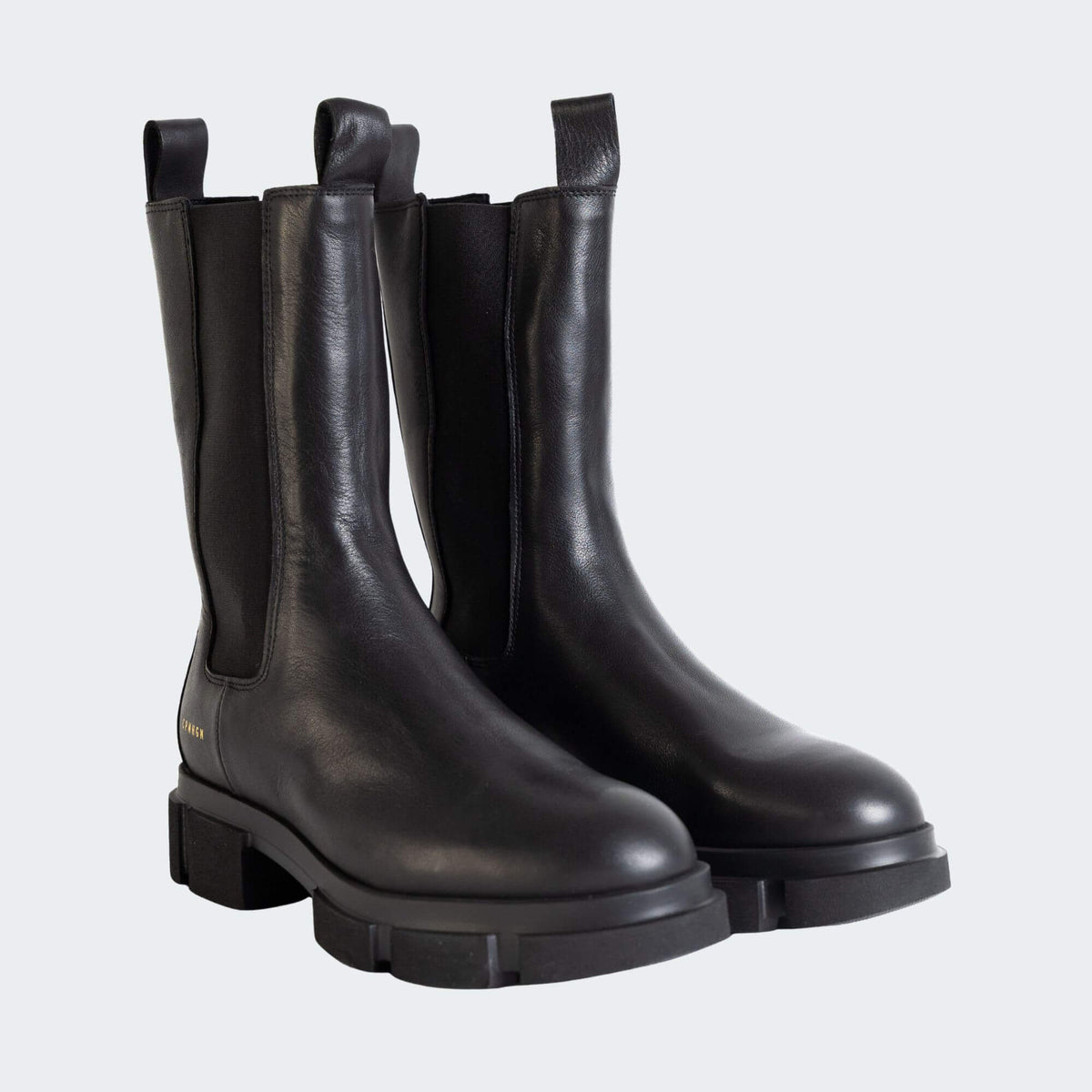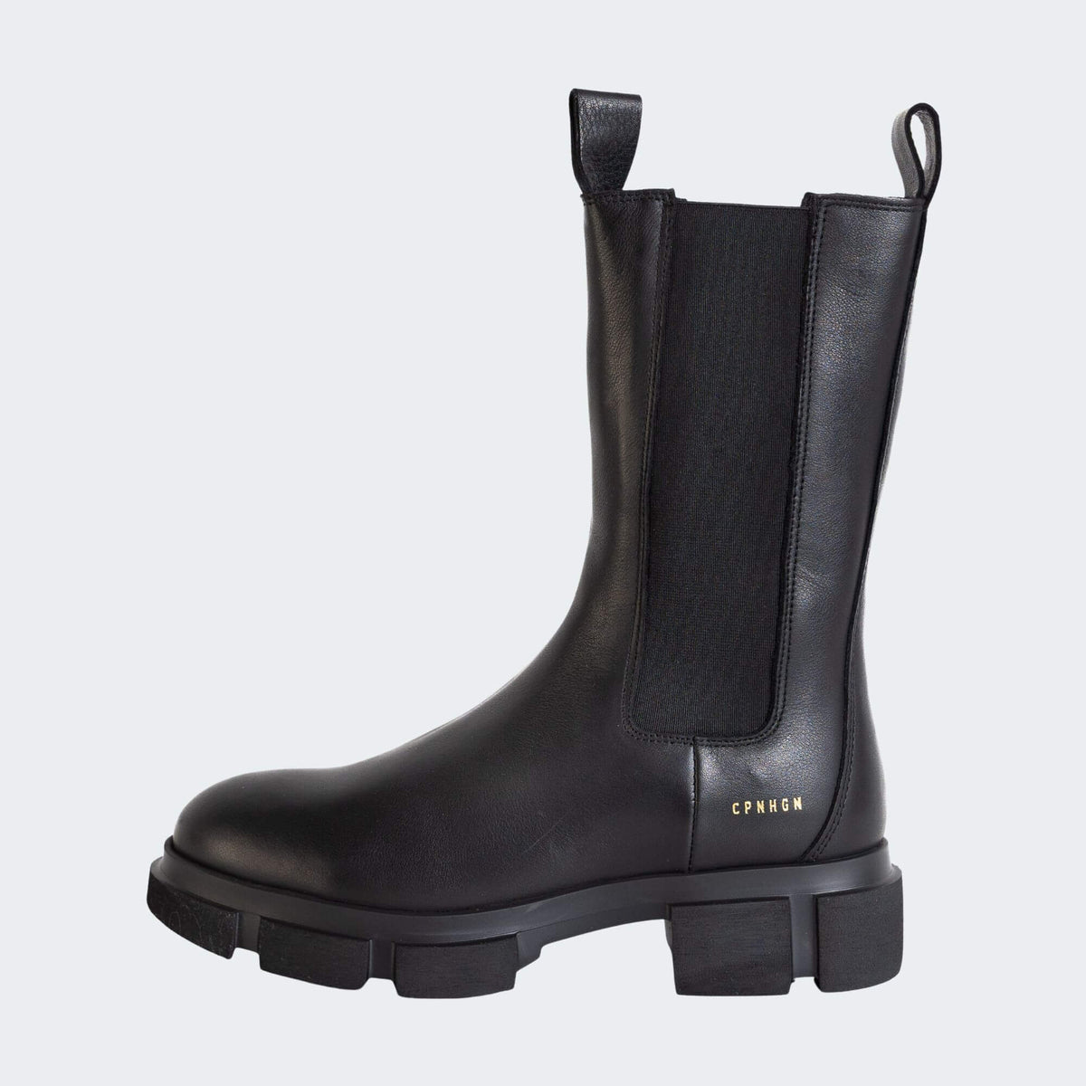 Il tronchetto Copenhagen cph 500 nero presenta una tomaia più alta rispetto ai modelli tradizionali, arricchita da elastici laterali neri per una calzata facile e confortevole. La suola carrarmato garantisce robustezza e grip, rendendo questo tronchetto ideale per affrontare con stile e praticità la stagione autunno/inverno 2025.