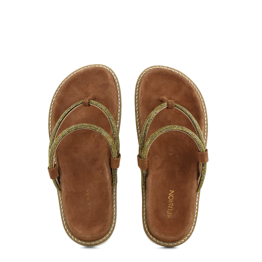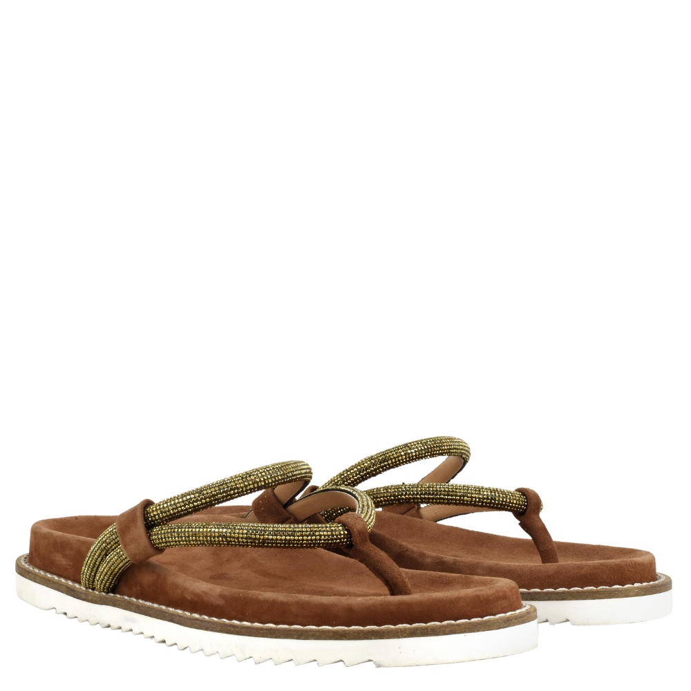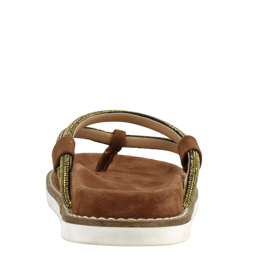 Questo infradito con due fasce a gioiello e un plantare comodissimo, è facile da abbinare a un abbigliamento over o a un paio di jeans, o come a qualcosa di chiffon estivo. Il sottopiede è in pelle e la suola in gomma è ultraleggera.