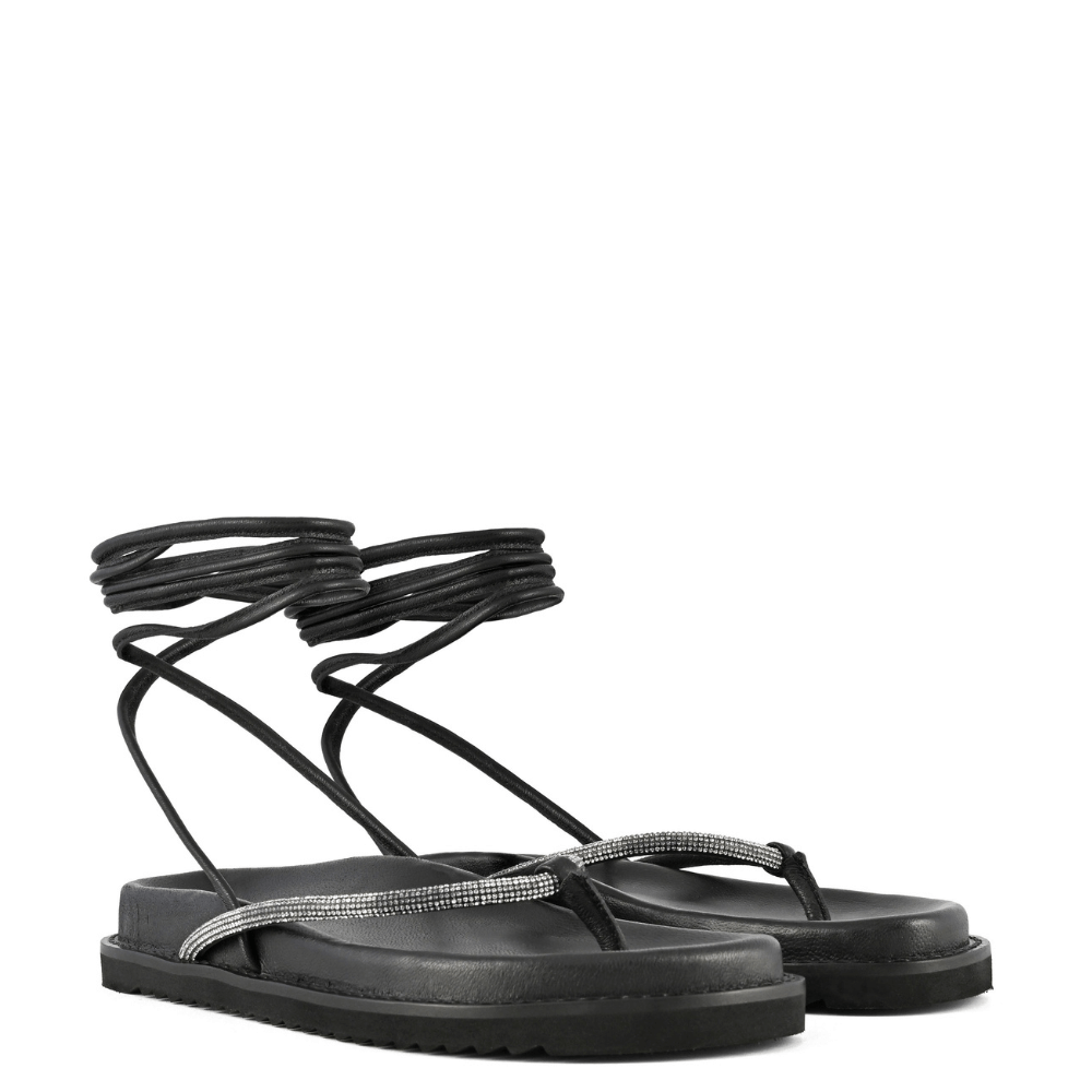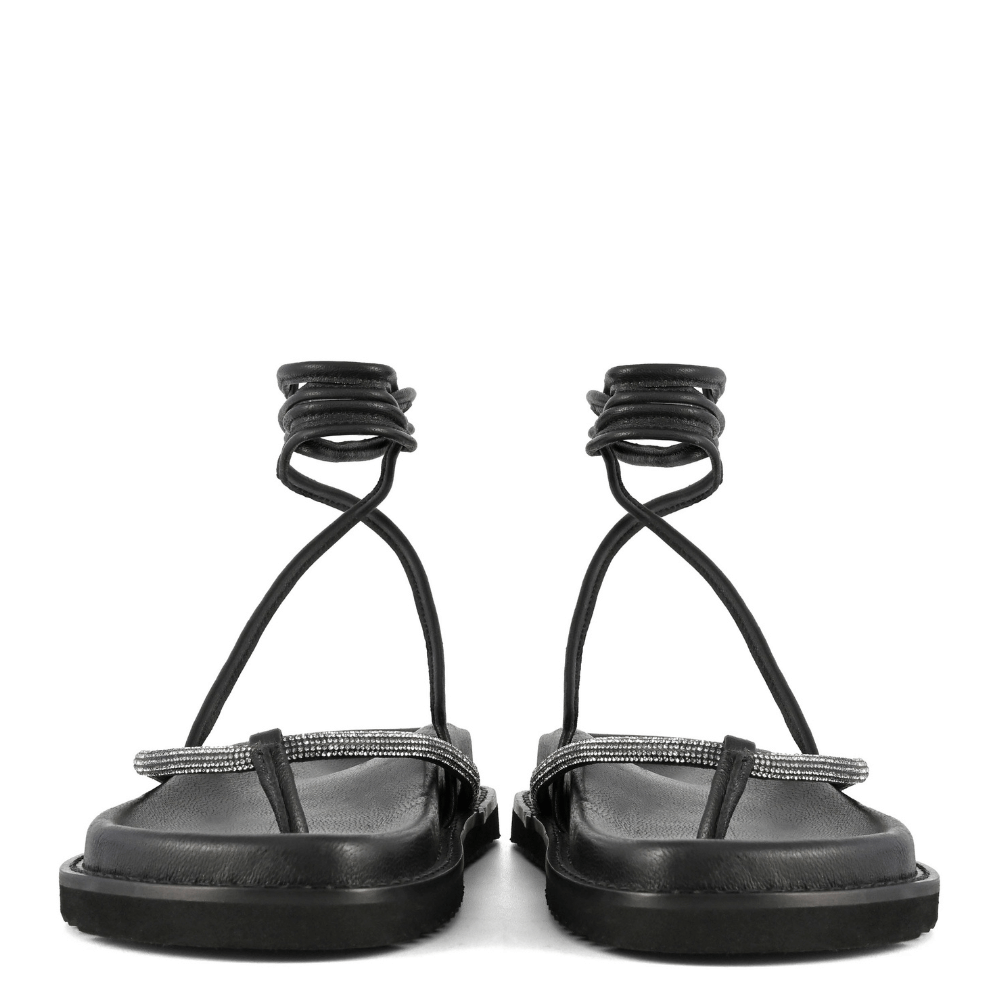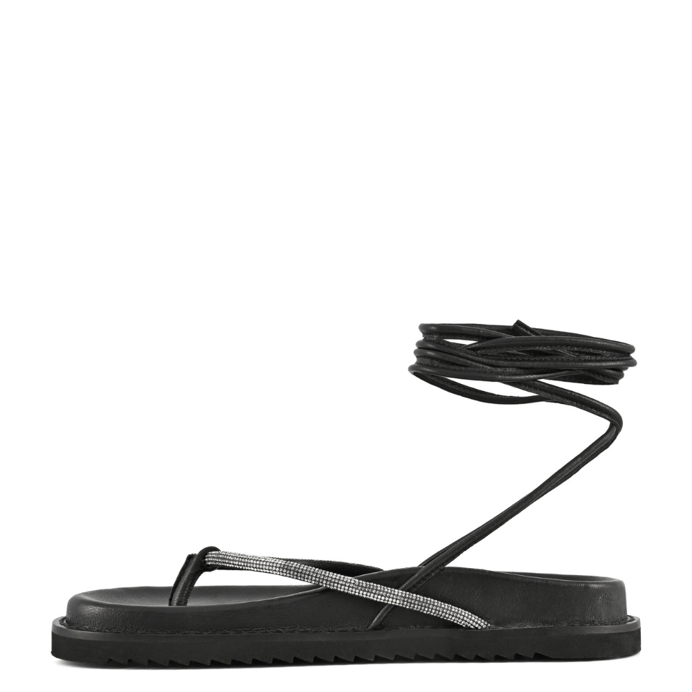 Una novità di sandalo fashion e comodo nello stesso tempo con lacci da annodare intorno alla caviglia con un po' di strass che non guasti mai. Un infradito che riuscirai ad abbinarlo per ogni outfit che tu sceglierai ma anche che calzerai volentieri grazie al fondo fusbett che ti renderà una camminata confortevole.