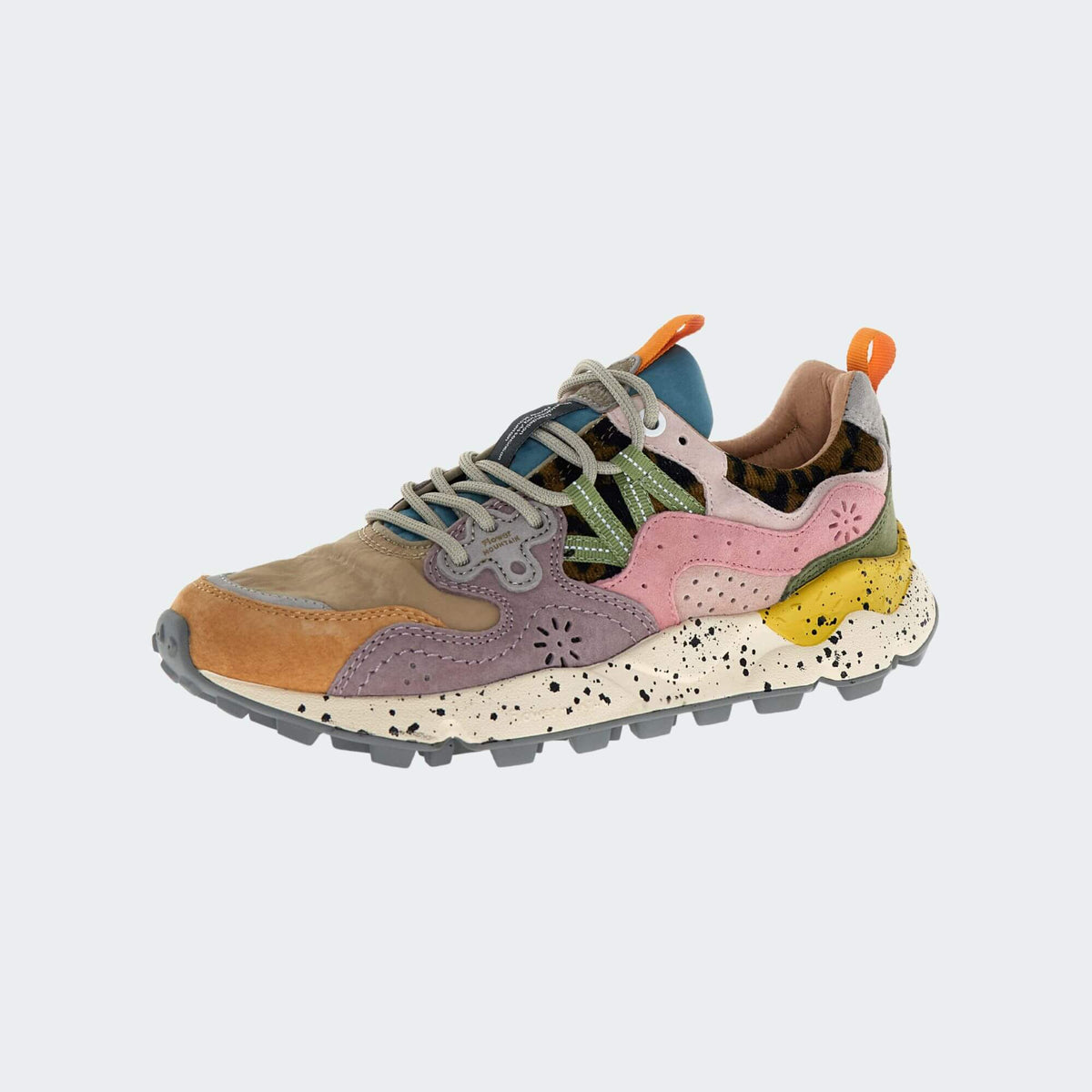 Le sneakers Flower Mountain YAMANO 3 per donna, nella combinazione di colori light mustard, grey e cipria, uniscono stile contemporaneo e comfort. Ideali per chi cerca un look dinamico e originale, queste scarpe garantiscono leggerezza e attenzione ai dettagli, perfette per completare con eleganza ogni outfit casual della stagione autunno/inverno 2025.