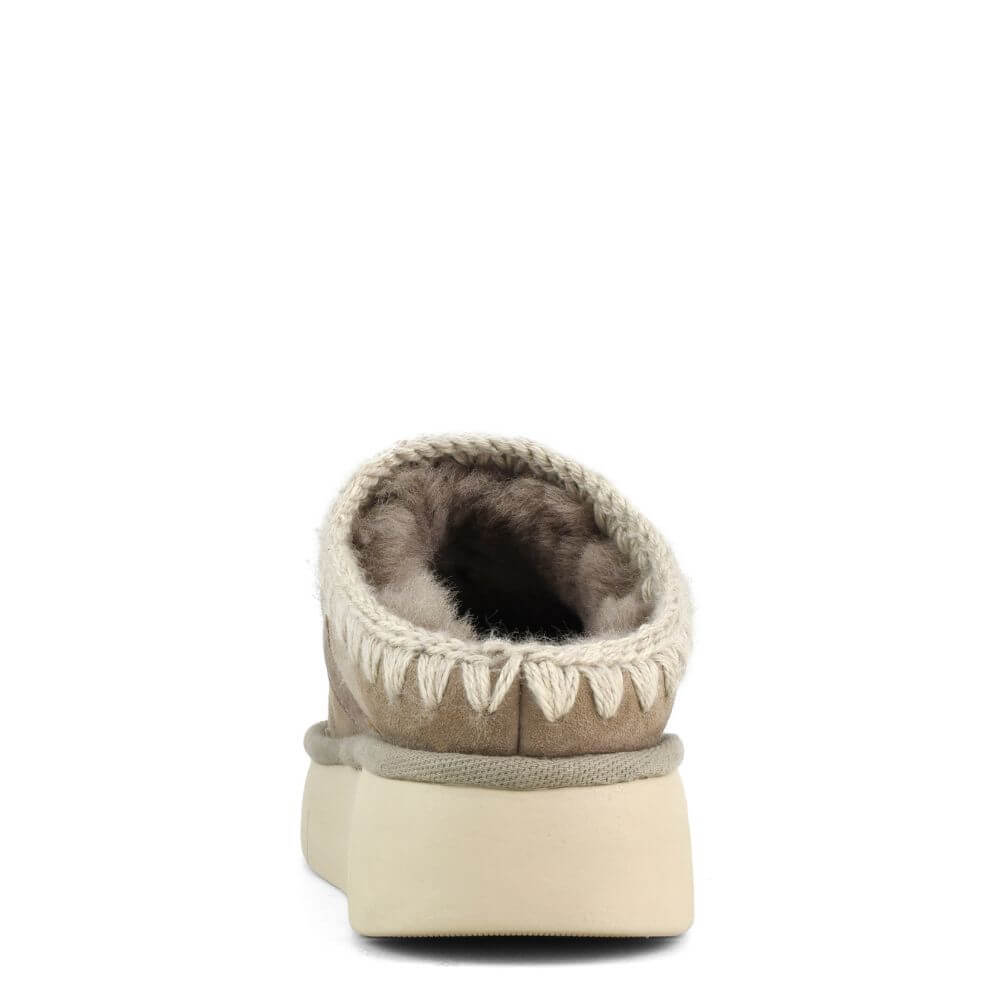 Ciabatta invernale in scamosciato con dettagli intrecciati in lana. Comfort e stile si uniscono grazie alla suola robusta che offre stabilità e al cinturino laterale con fibbia in metallo per un tocco moderno. Perfetta per i giorni più freddi. Disponibile in marrone, grigio e nero