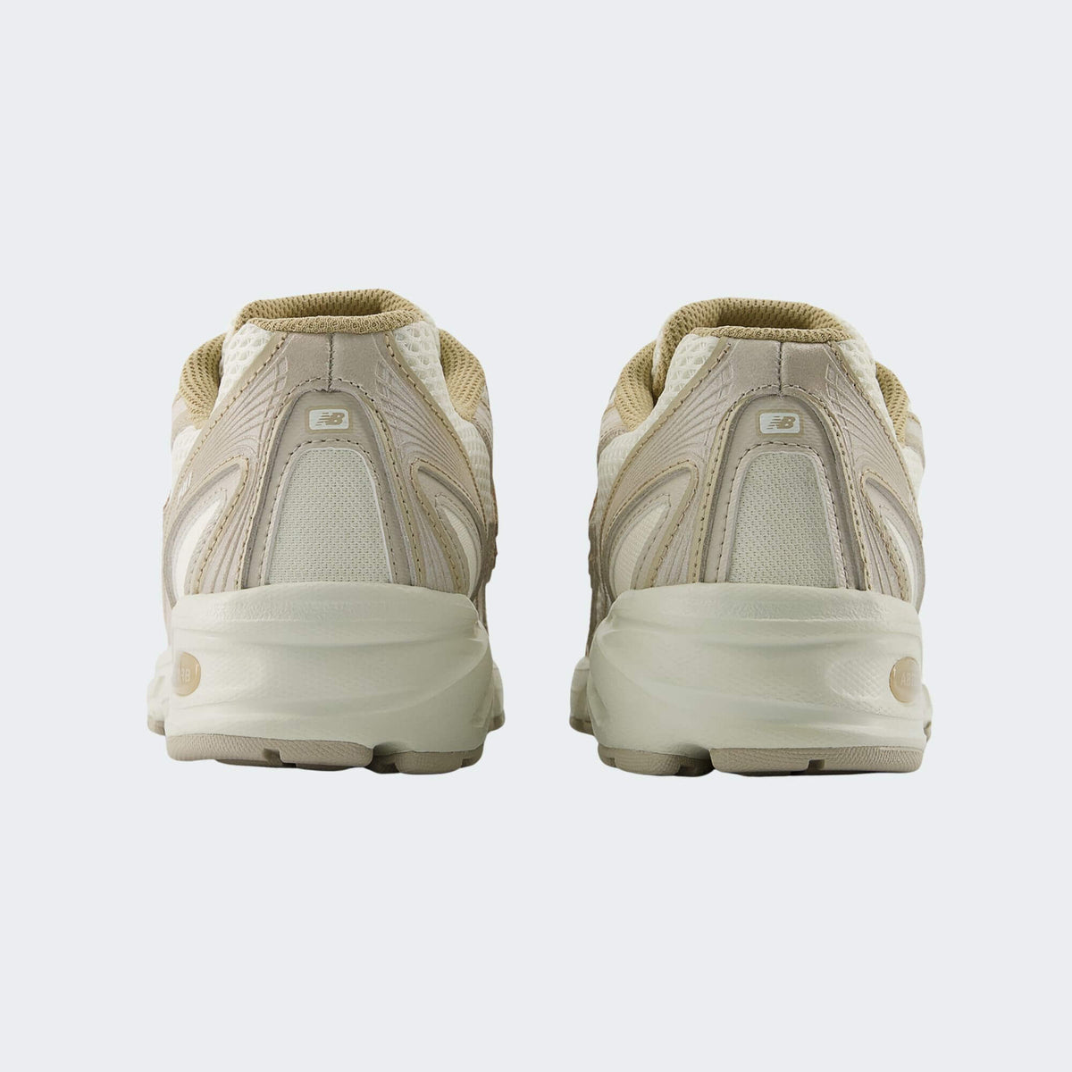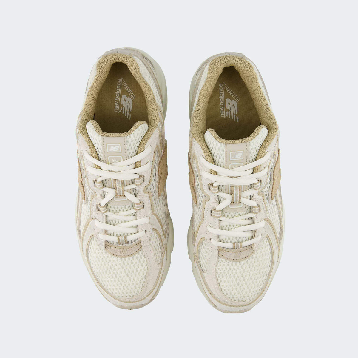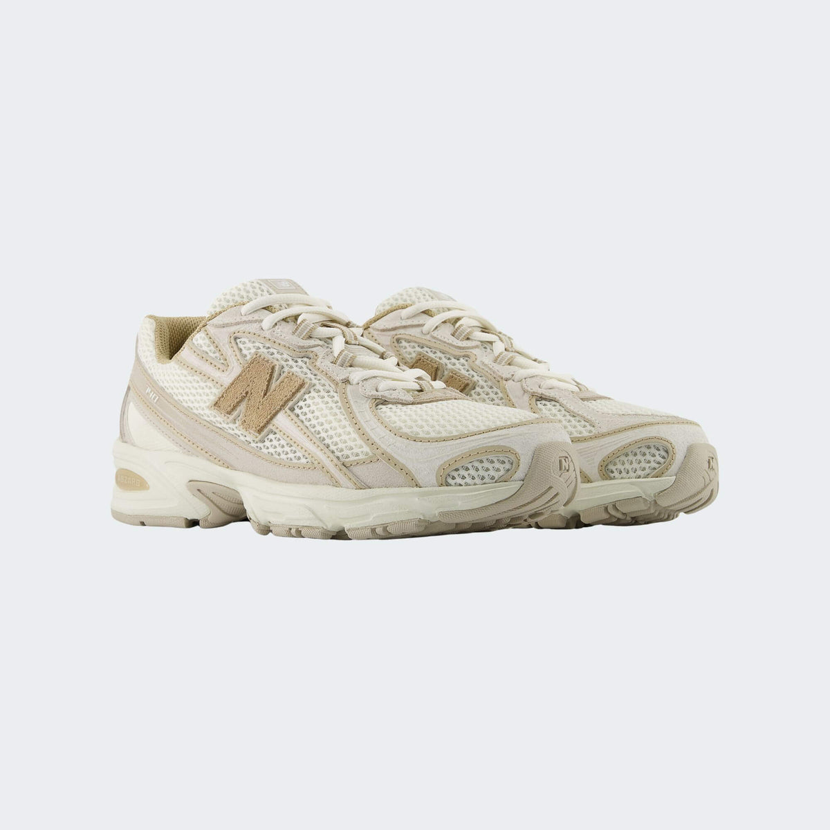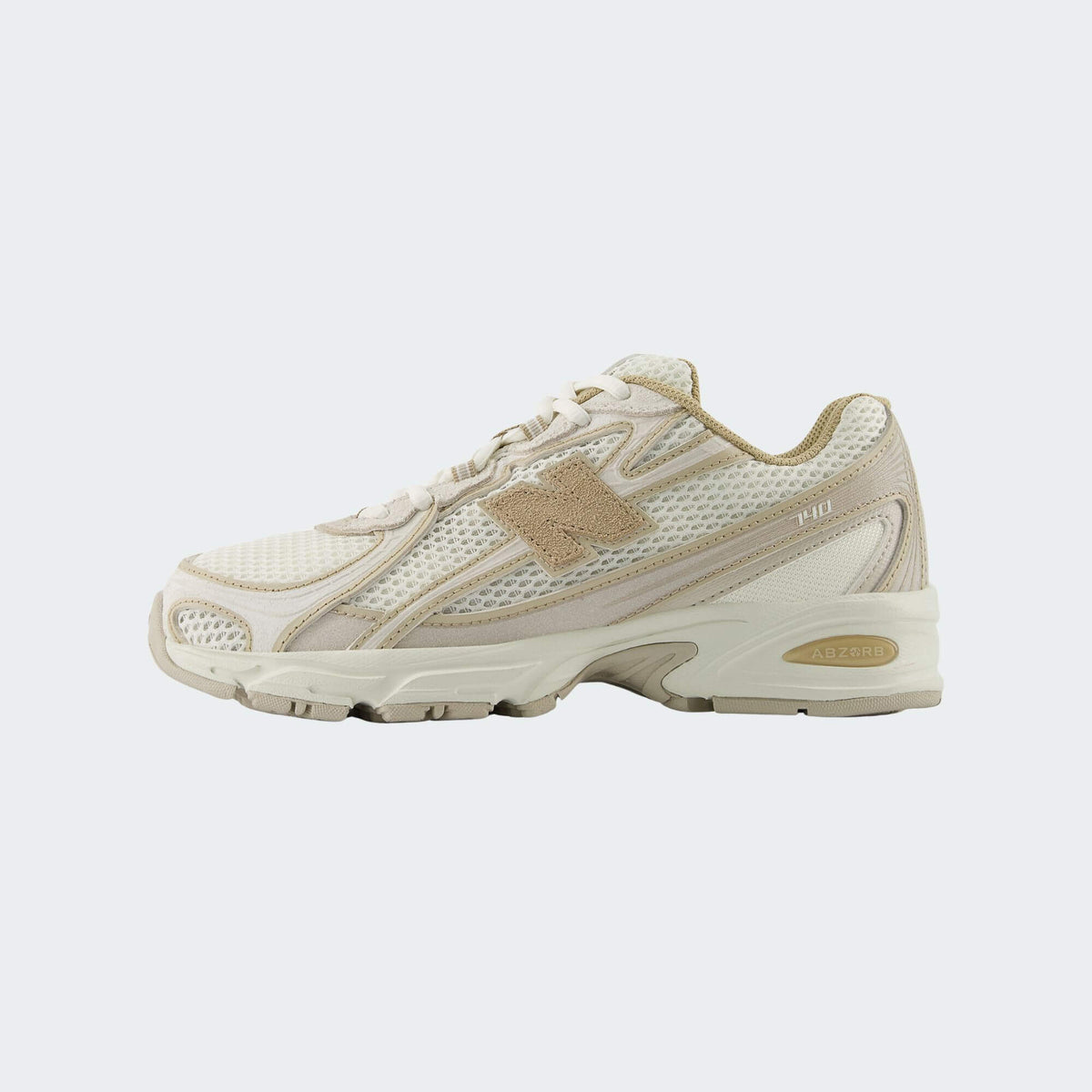 • Estetica Multidimensionale: La tomaia combina mesh a trama larga e sovrapposizioni sintetiche in diverse sfumature di beige e crema, creando un effetto visivo ricco e dinamico.