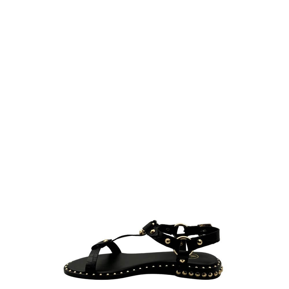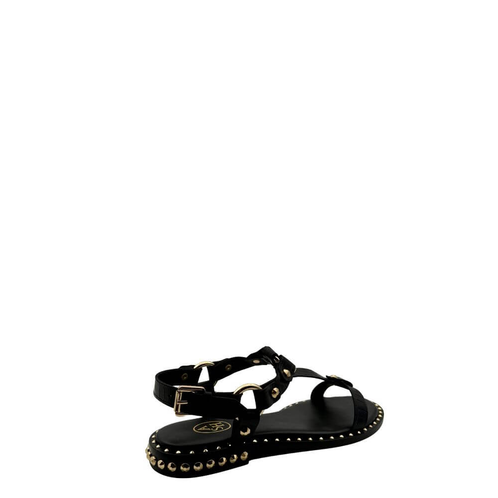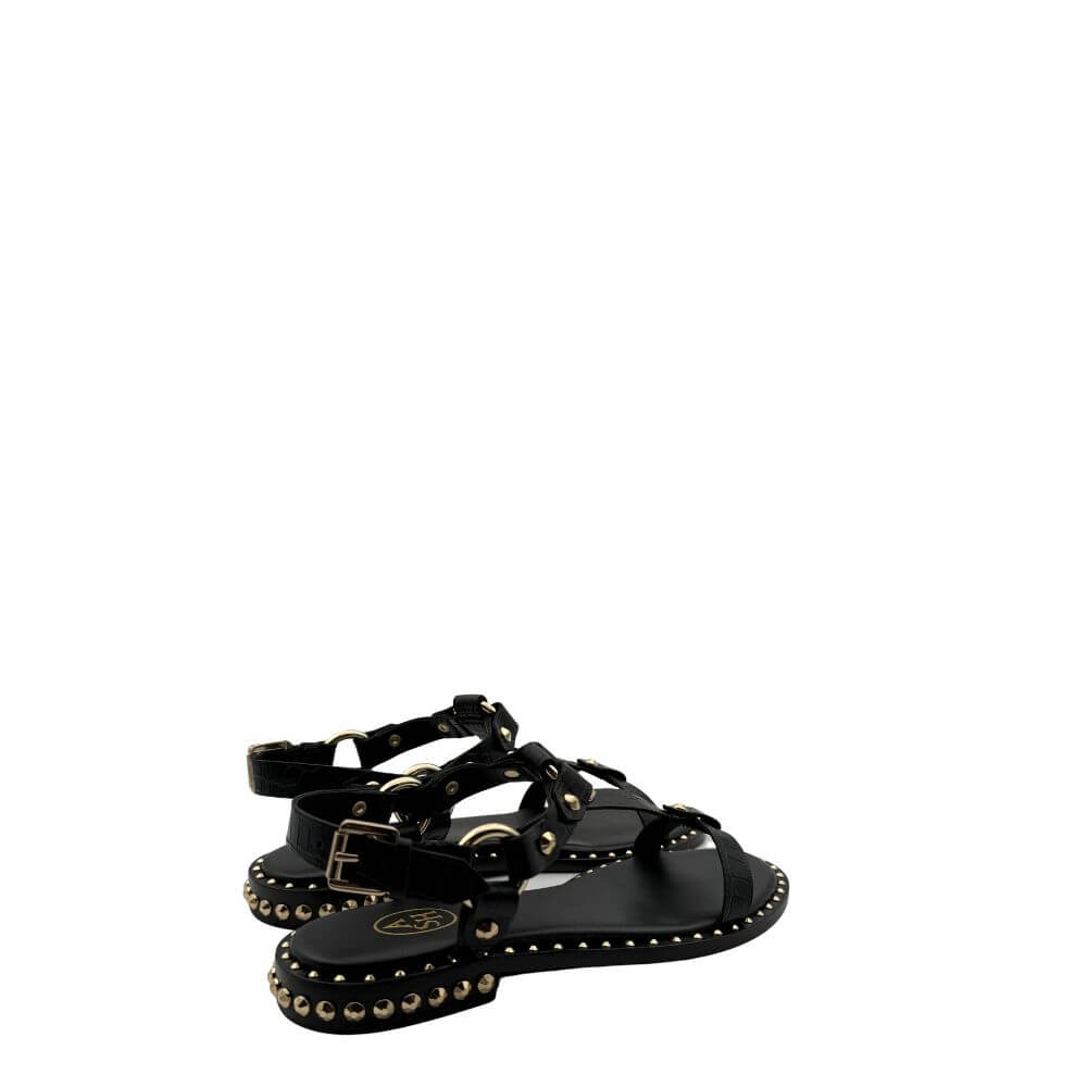 Sandalo Ash Patsybis01 nero, con borchie e allacciatura alla caviglia. Perfetto per completare un look rock e sofisticato, ideale per la prossima estate 2025. Unisce stile e comfort per accompagnare ogni tuo passo con eleganza.