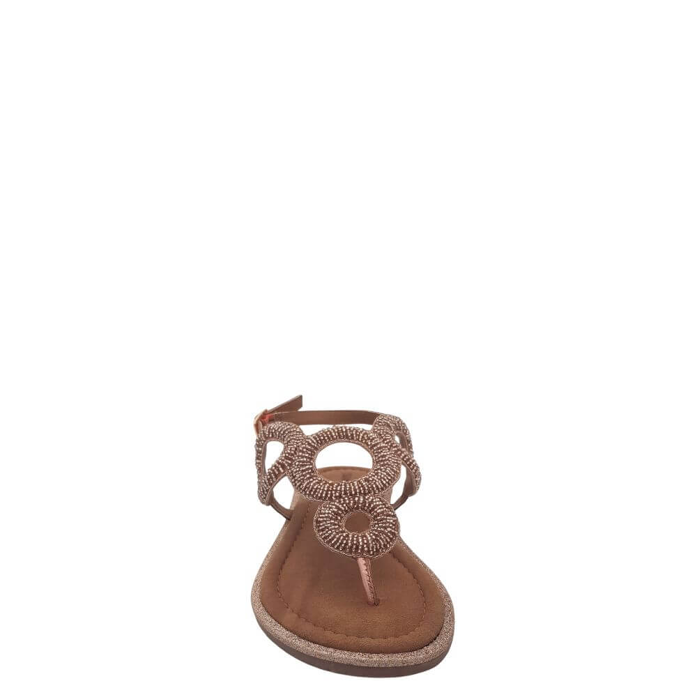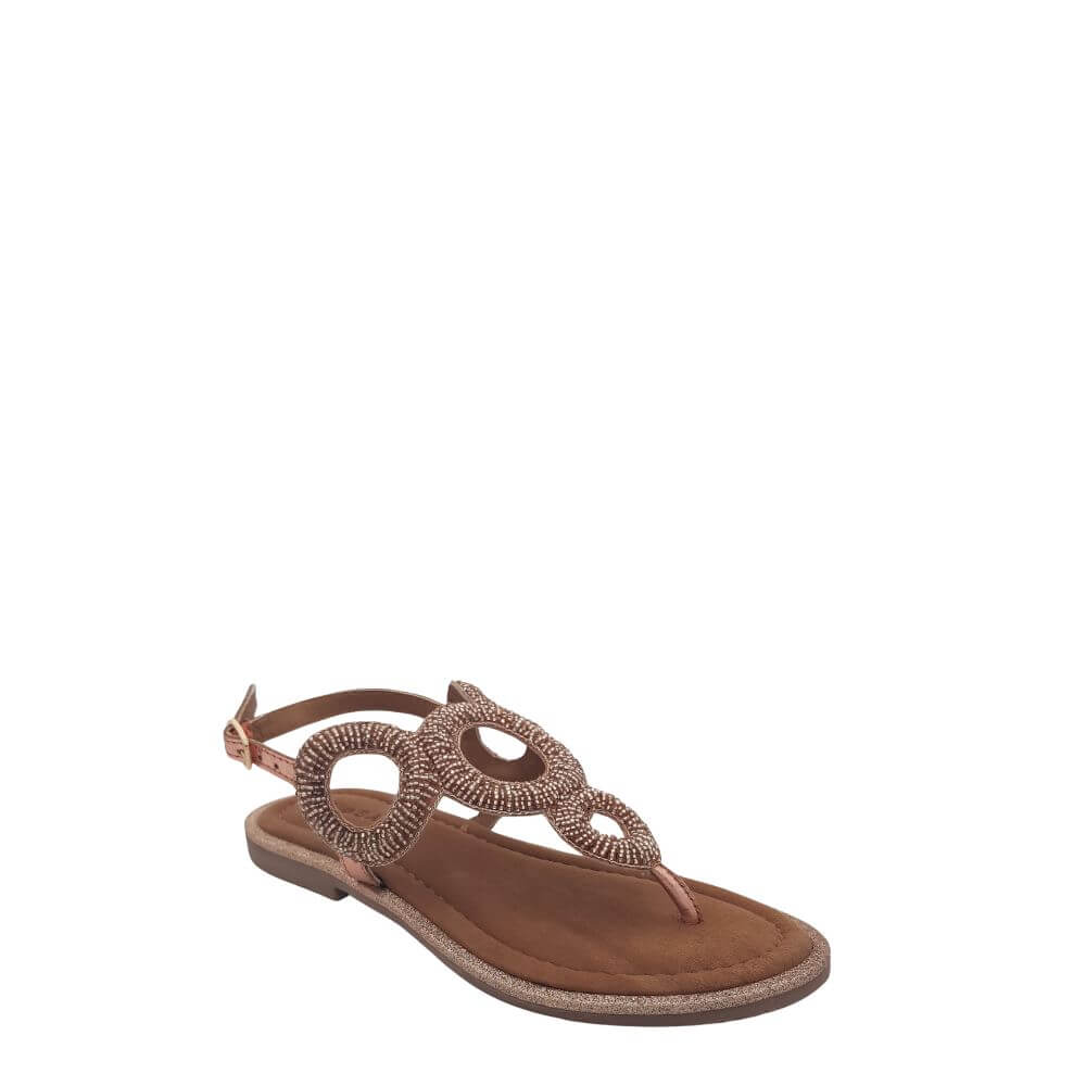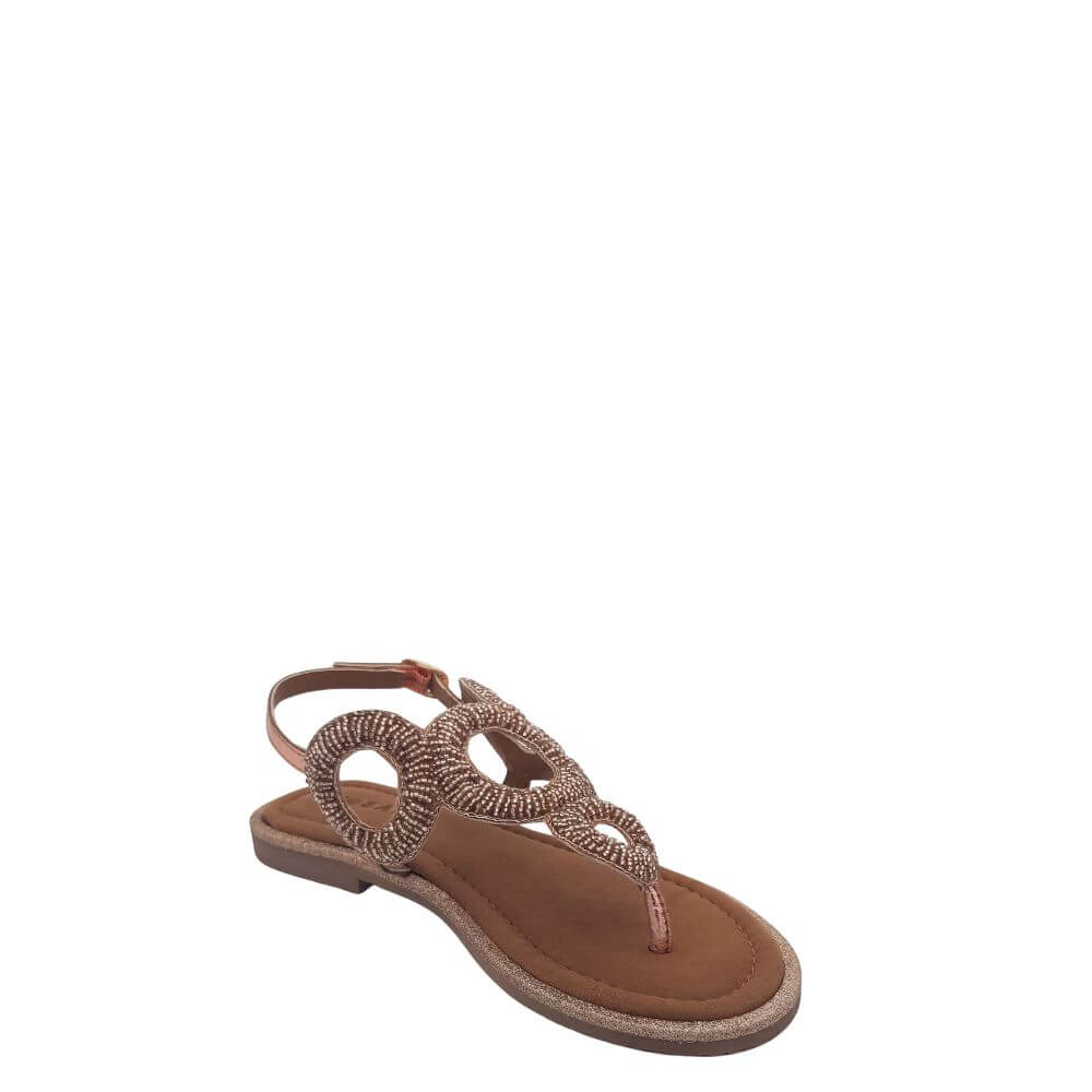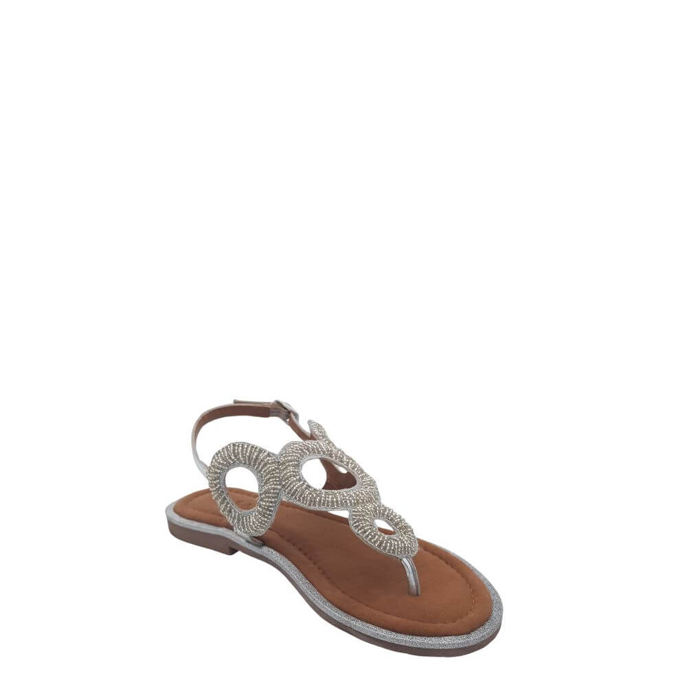 Questo sandalo elegante e confortevole grazie al sottopiede imbottito e la tomaia in perline lo rende perfetto per un look raffinato e scintillante . Un ottimo complemento per i tuoi outfit estivi, combinando stile e comodità. Ideale per ogni occasione, dall'aperitivo estivo alle passeggiate sul lungomare. Disponibile nel colore rosegold o silver