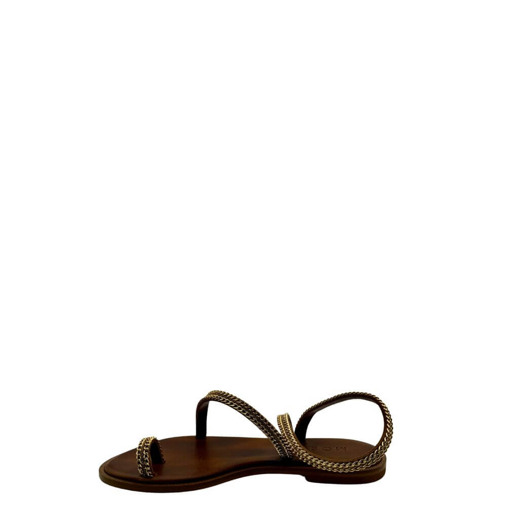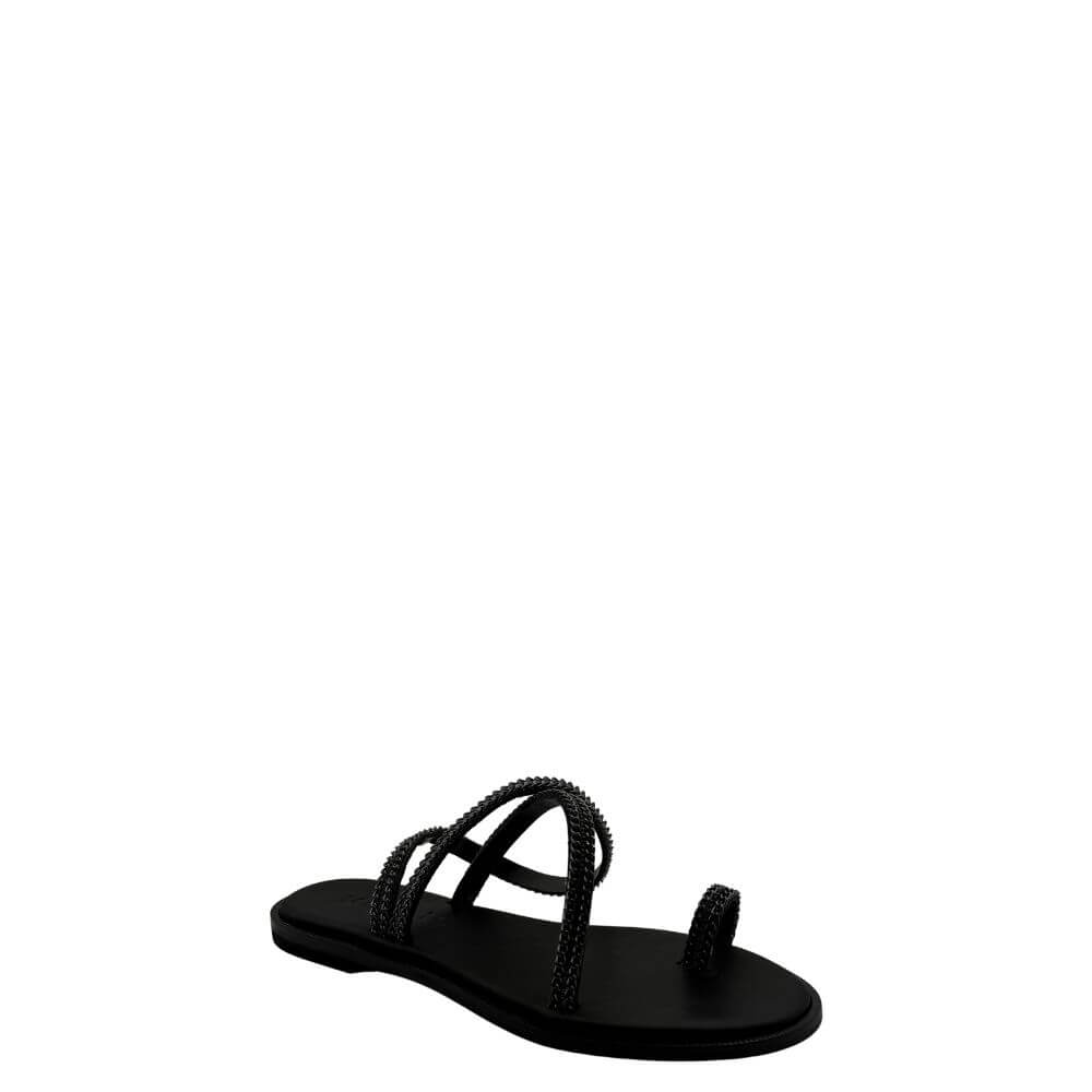 Questo sandalo donna a infradito è realizzato in pelle di alta qualità e presenta un elegante motivo a catena che aggiunge luminosità al tuo look. Ideale per le giornate più calde, questo sandalo combina comfort e stile, per farti sentire al meglio in ogni occasione. Disponibile in due varianti colore nero e oro .