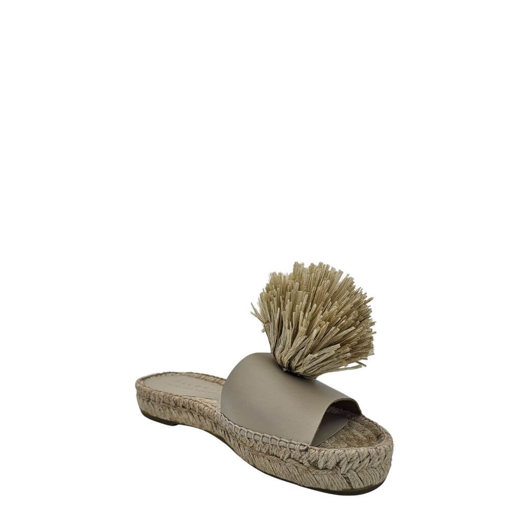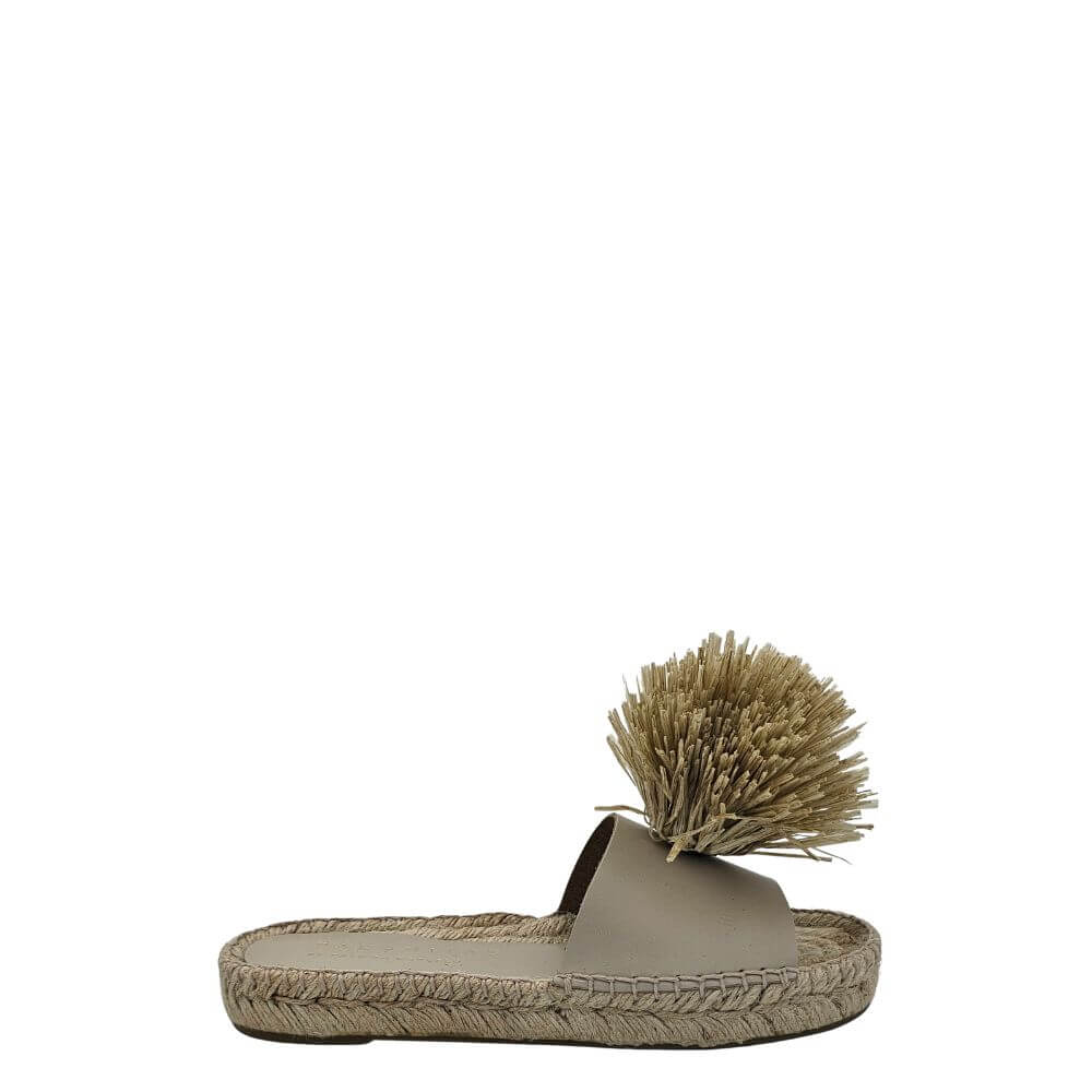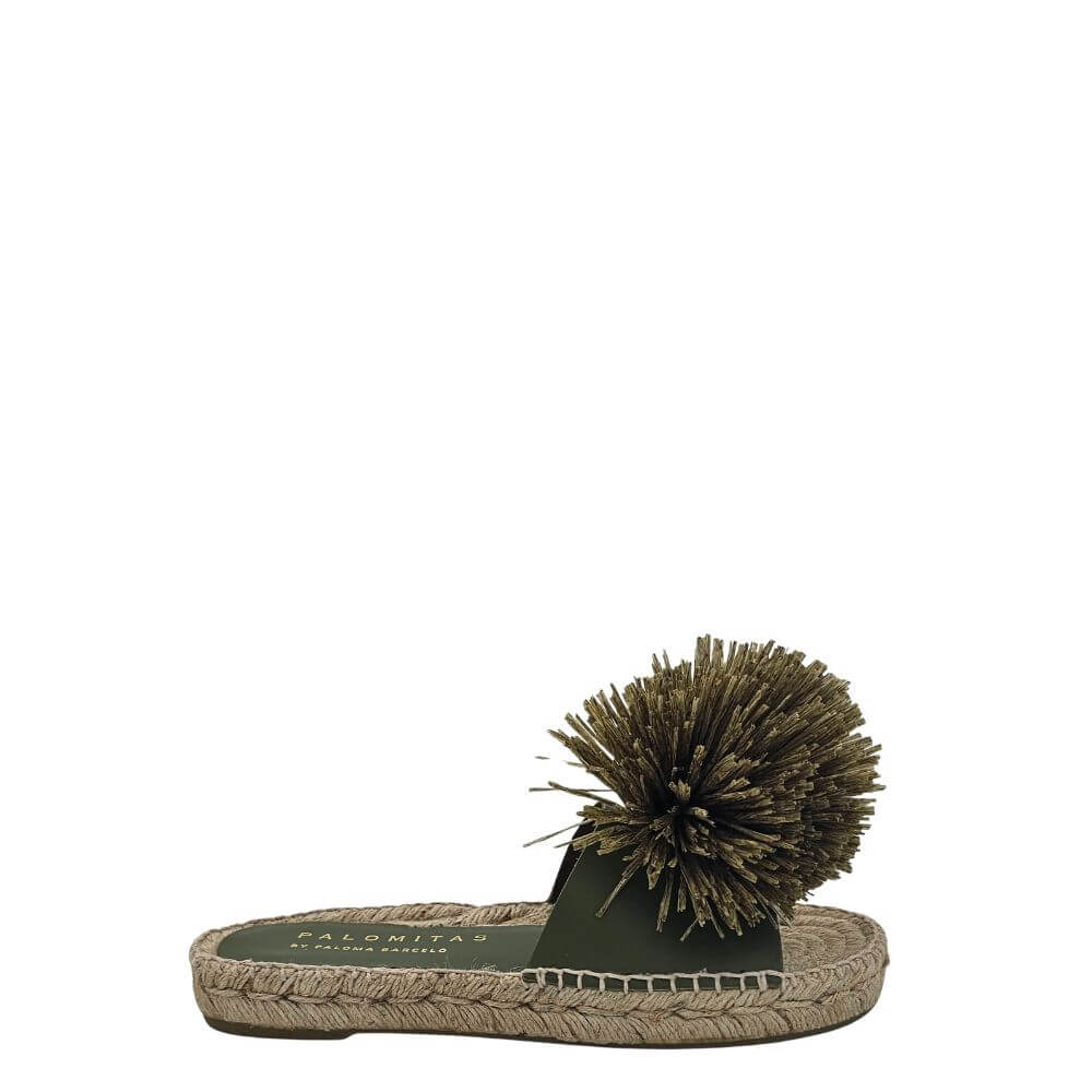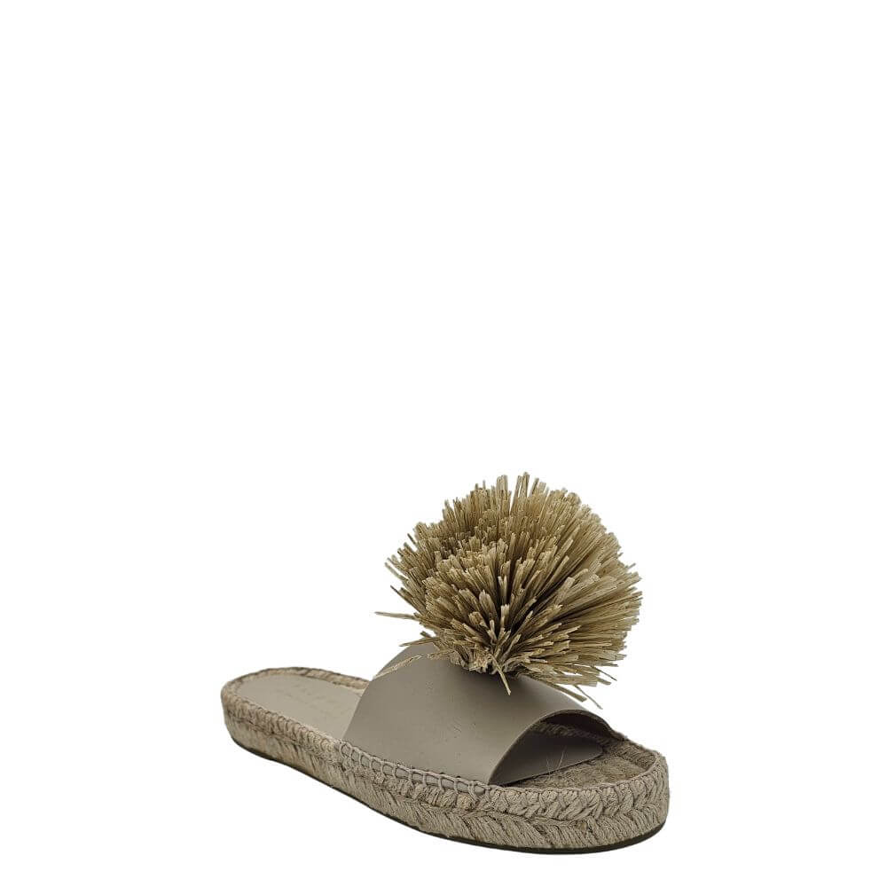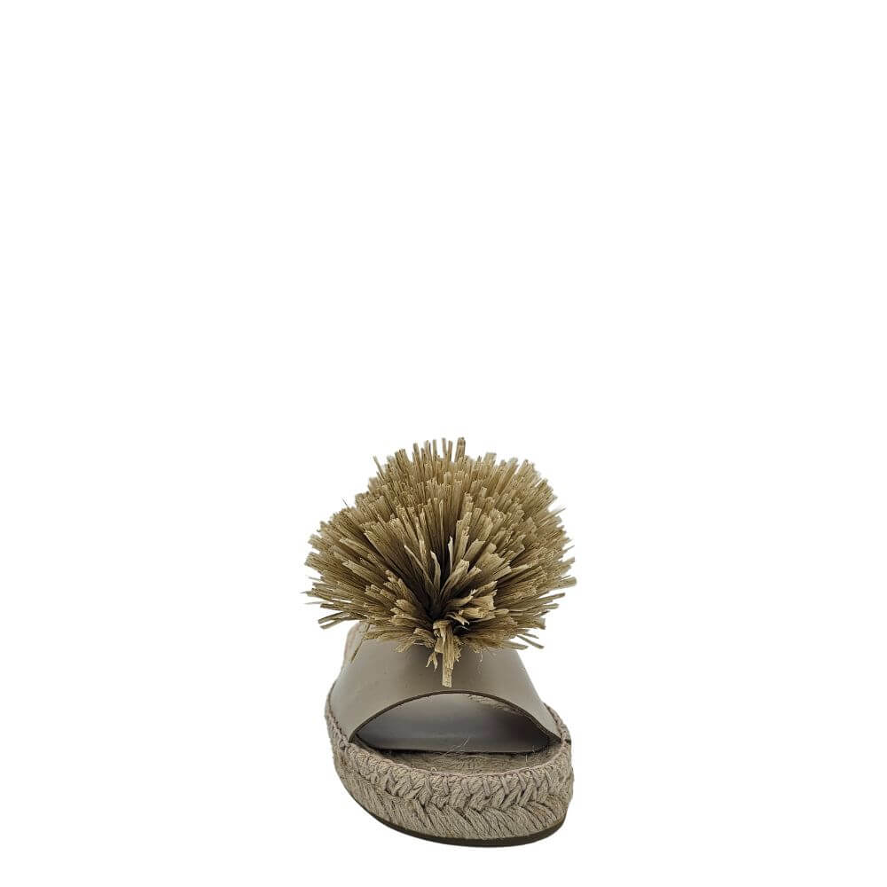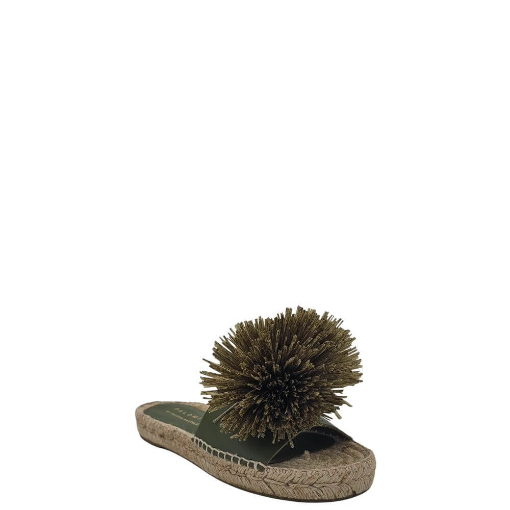 Aggiungi un tocco di originalità e stile al tuo look estivo con questa ciabatta donna verde in pelle con pon pon decorativo e zeppa in corda. Un modello unico che unisce il comfort delle espadrillas alla raffinatezza di un sandalo artigianale, perfetto per chi ama distinguersi.