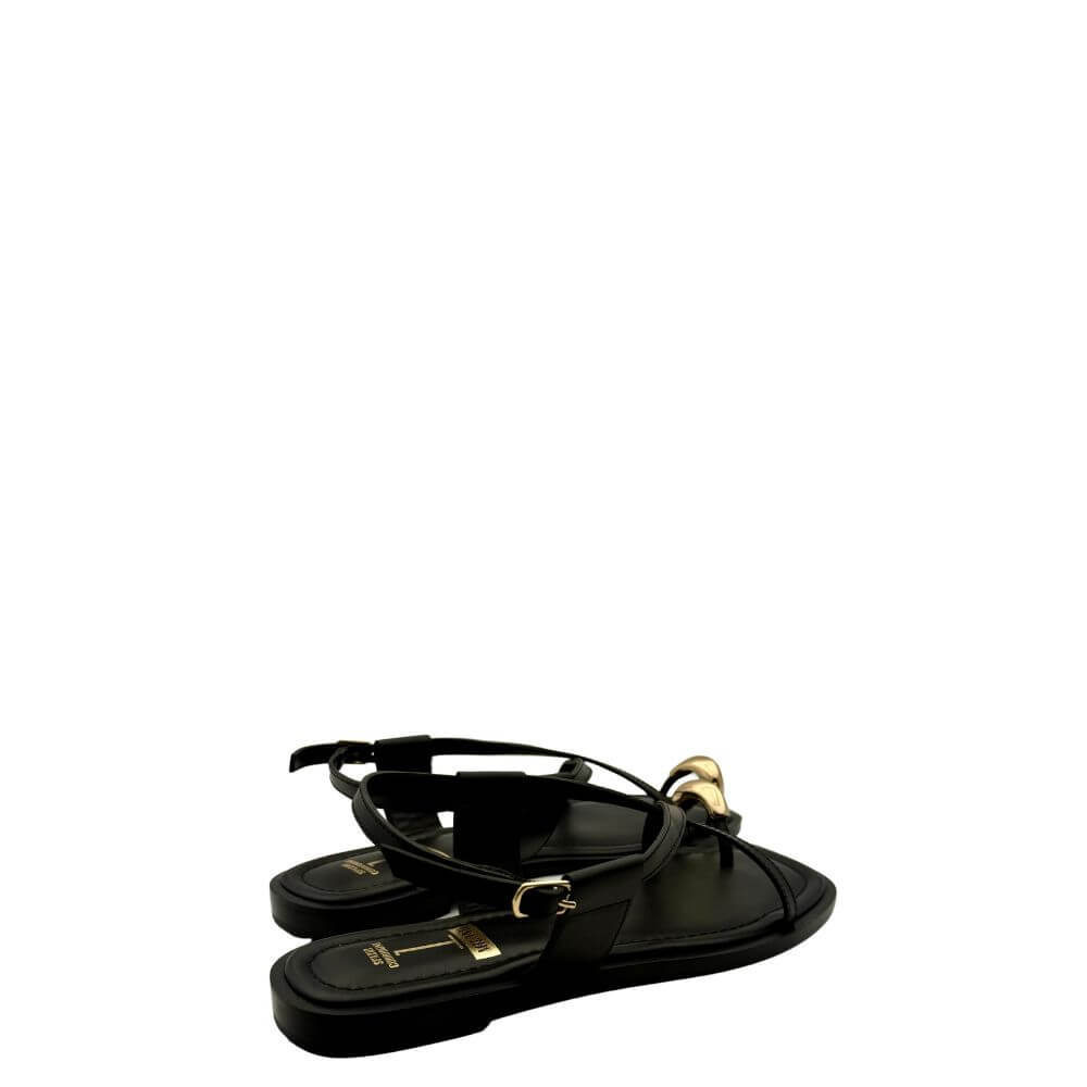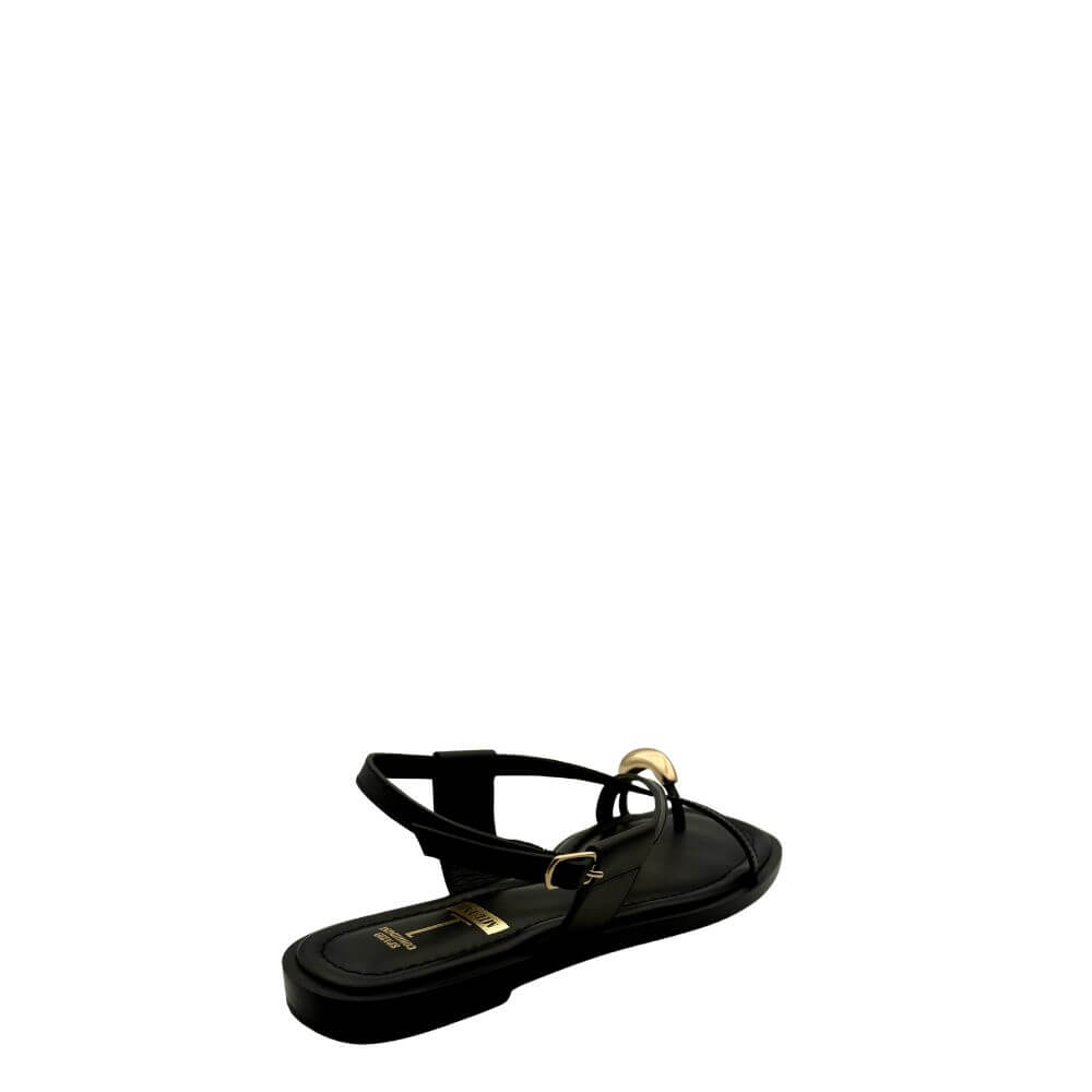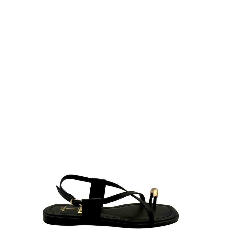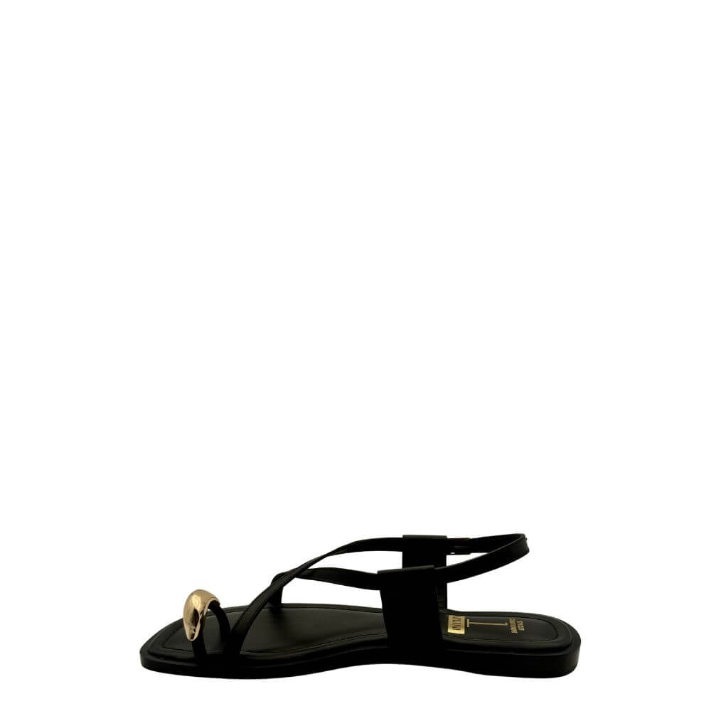 Realizzato in morbida ecopelle color marrone caldo, questo modello minimal conquista con il dettaglio glamour dell’anello dorato sull’alluce.