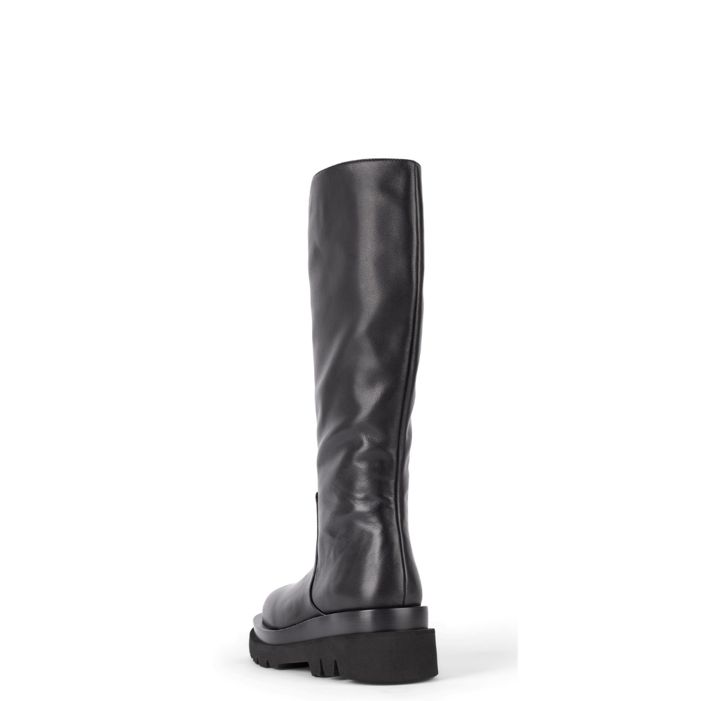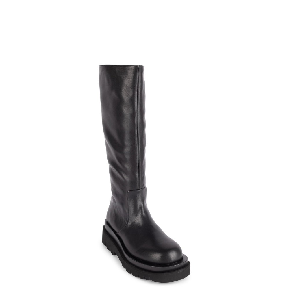 Stivale nero di pelle morbidissima con cerniera laterale e suola carrarmato