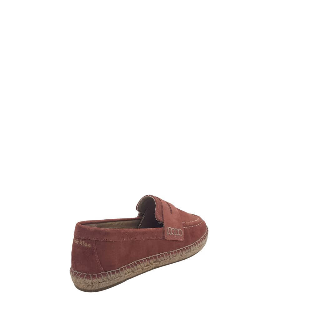 Mocassini rosa in pelle scamosciata con punta tonda , logo ricamato in contrasto di colore sul talloncino , intersuola in corda.