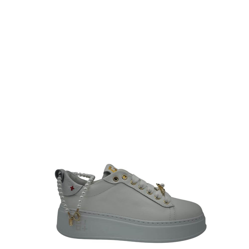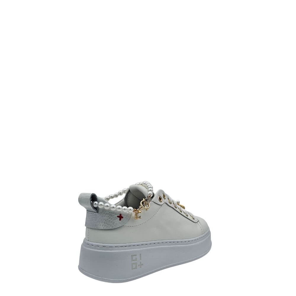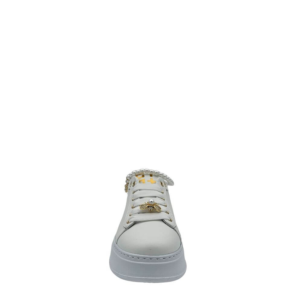 Sneakers bianca GIO+ PIA340A con accessori in pietre e perle, perfette per un look elegante e alla moda. Allacciate per una calzata sicura e comoda durante tutta la giornata. Aggiungi un tocco di classe ai tuoi outfit estivi con queste sneakers dall'ultima collezione p/e 2025.