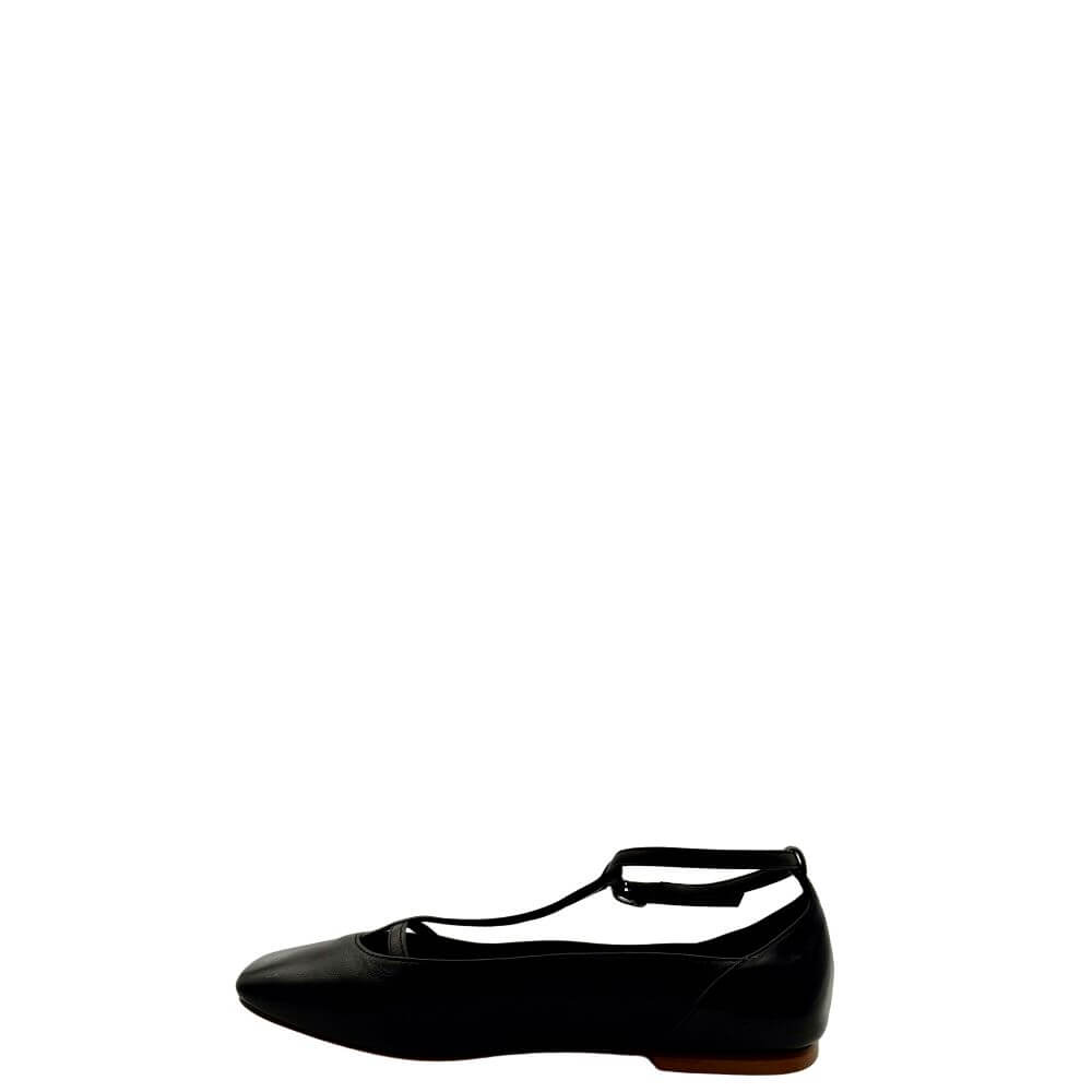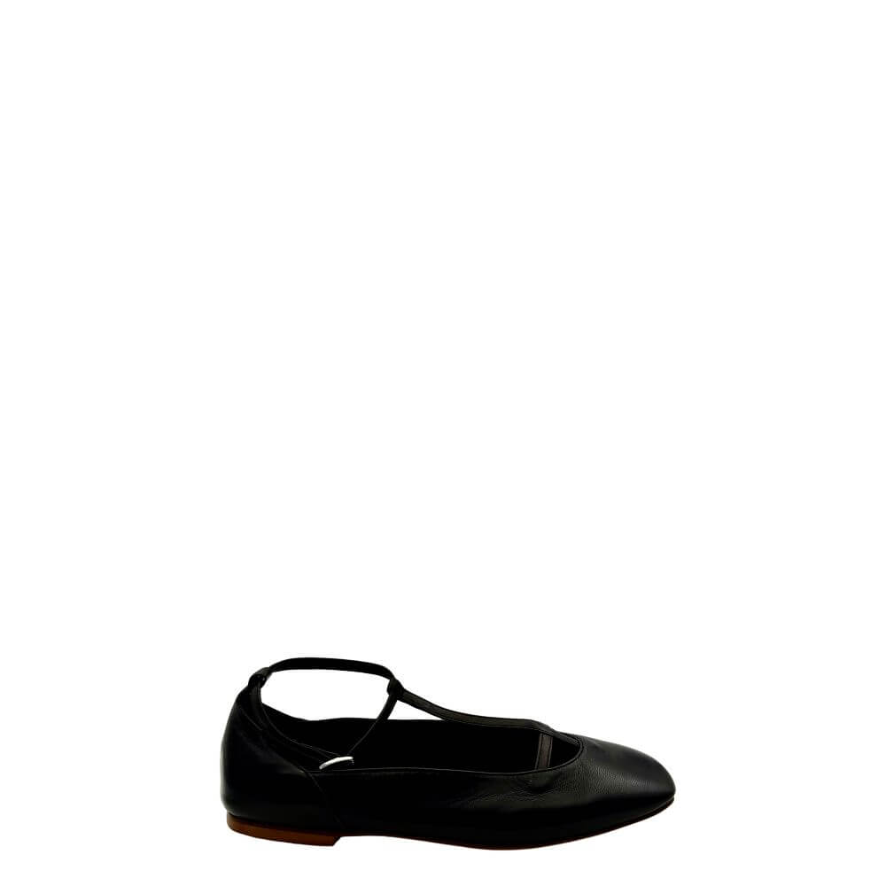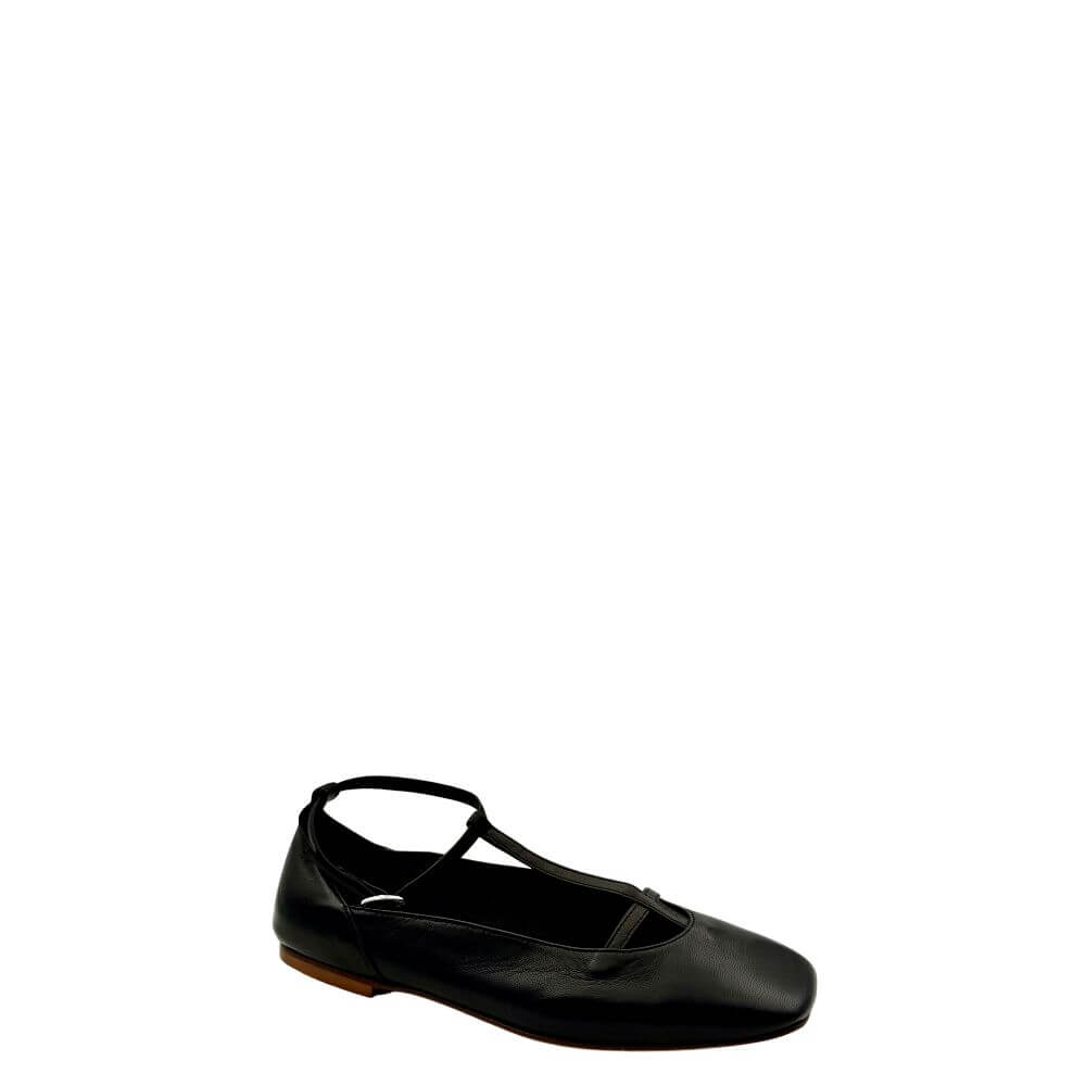 Ballerina realizzata in pregiata nappa nera e si distingue per la sua elegante chiusura allacciata alla caviglia. Con una fattura di alta qualità, questa ballerina è un must-have per la tua collezione di calzature. Comoda e di design raffinato, sarà un'aggiunta versatile al tuo guardaroba, perfetta per ogni occasione.