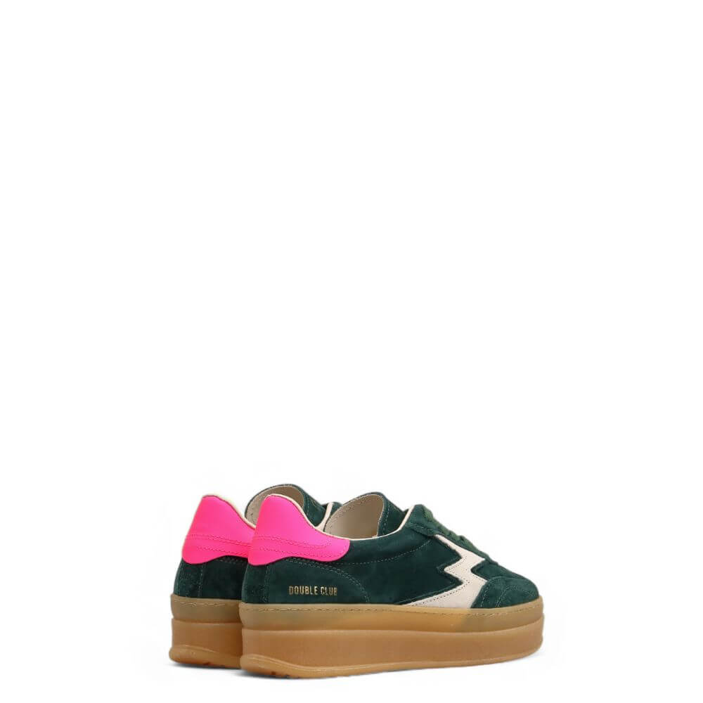 Moaconcept ha realizzato l'iconica sneaker in suede verde con suola platform in gomma color mastice e logo in bianco. Il tallone in pelle in contrasto fuxia. La calzata è regolare quasi precisa e la soletta è estraibile. Puoi abbinarla a un look che bilanci il colore vivace delle scarpe con capi più neutri