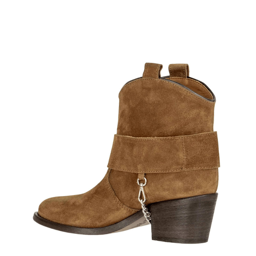 Tronchetto texanino marrone, con accessorio rimovibile che lo rende fashion e di tendenza per questa stagione , Realizzato tutto in pelle e prodotto in Italia. Ideale con uno short di jeans ma anche con un abitino colorato sarai sempre al centro dell'attenzione.