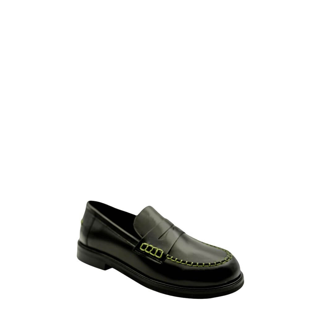 Scoprite la classe ed eleganza del mocassino Poesie Veneziane JPG40NEW. Realizzato in nero con cuciture in un delicato verde, offre il comfort del tradizionale college rivisitato con un tocco di modernità. Perfetto per uno stile sofisticato e raffinato, per un look senza tempo.