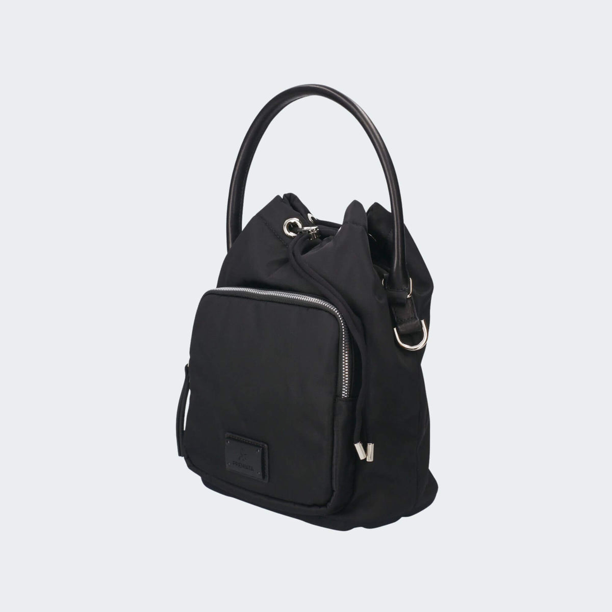 Borsa a secchiello in pregiato nylon, versatile da portare sia a mano che a spalla per un comfort ottimale. Disponibile in due eleganti varianti colore, nero e borgogna, perfetta per arricchire il tuo look autunno/inverno 2025 con stile e praticità.
