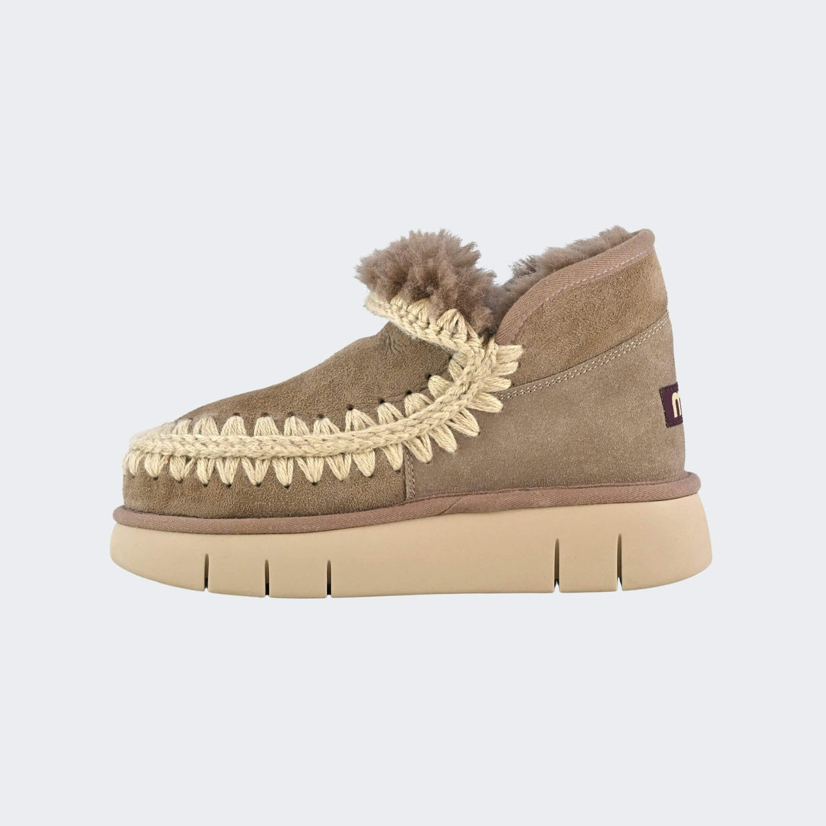 Rivoluziona il tuo look invernale con le Mou Eskimo Bounce Sneaker, l'ultima evoluzione di un'icona di comfort. Questo tronchetto platform (Modello FW531009A) unisce il design distintivo di Mou con una suola moderna e rialzata per un'altezza extra e un isolamento superiore.