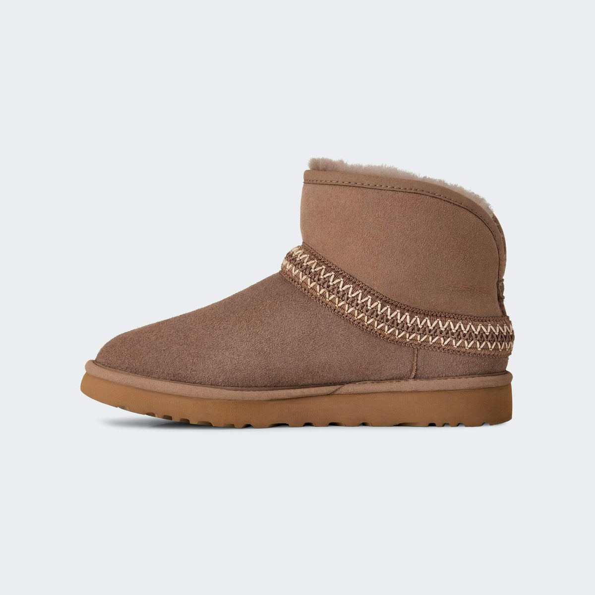 Questo tronchetto Ugg Classic Mini Crescent in beige unisce comfort e stile con un dettaglio distintivo sulla parte anteriore. La sua silhouette compatta e il colore caldo lo rendono perfetto per ogni occasione, offrendo calore e un tocco di eleganza discreta al tuo look quotidiano.