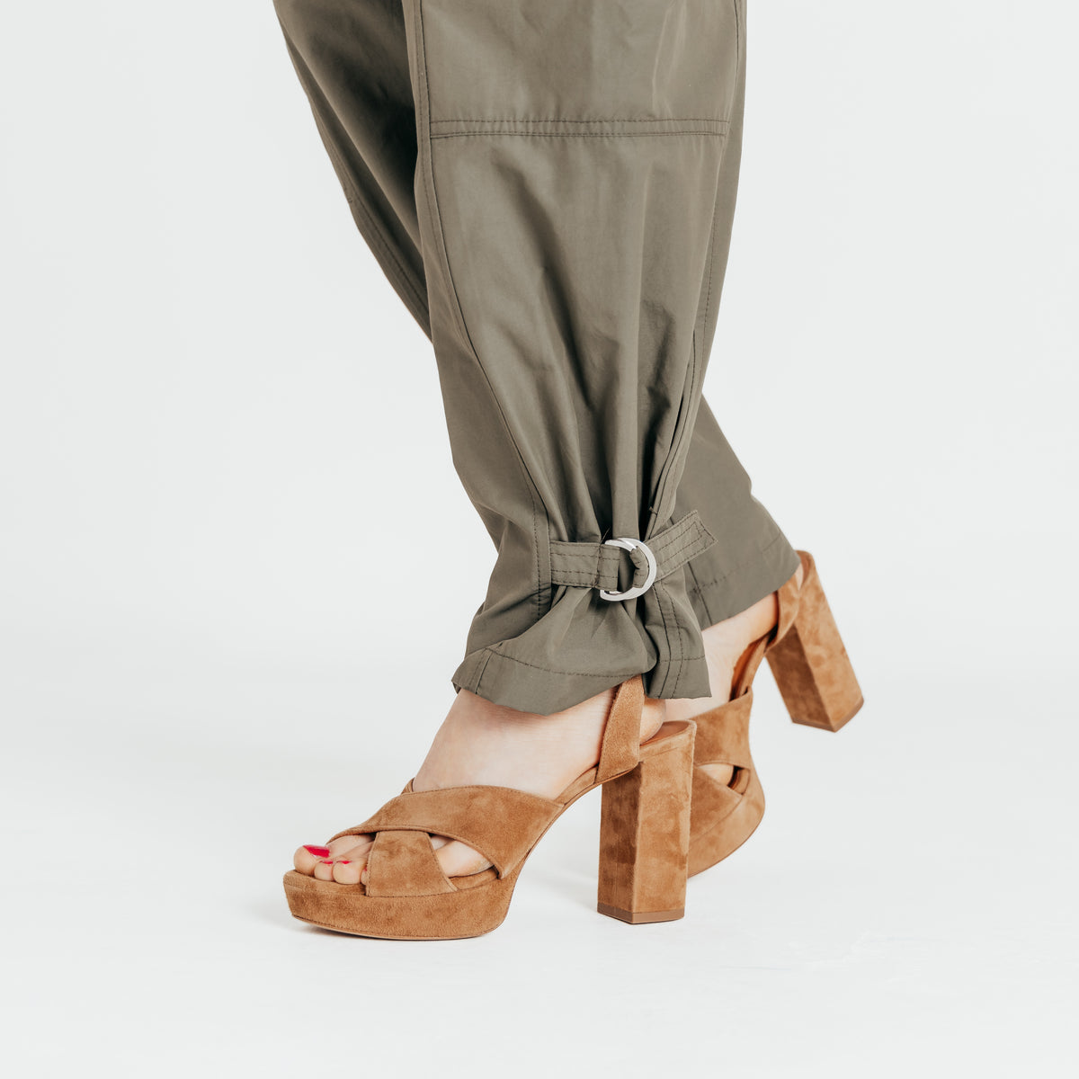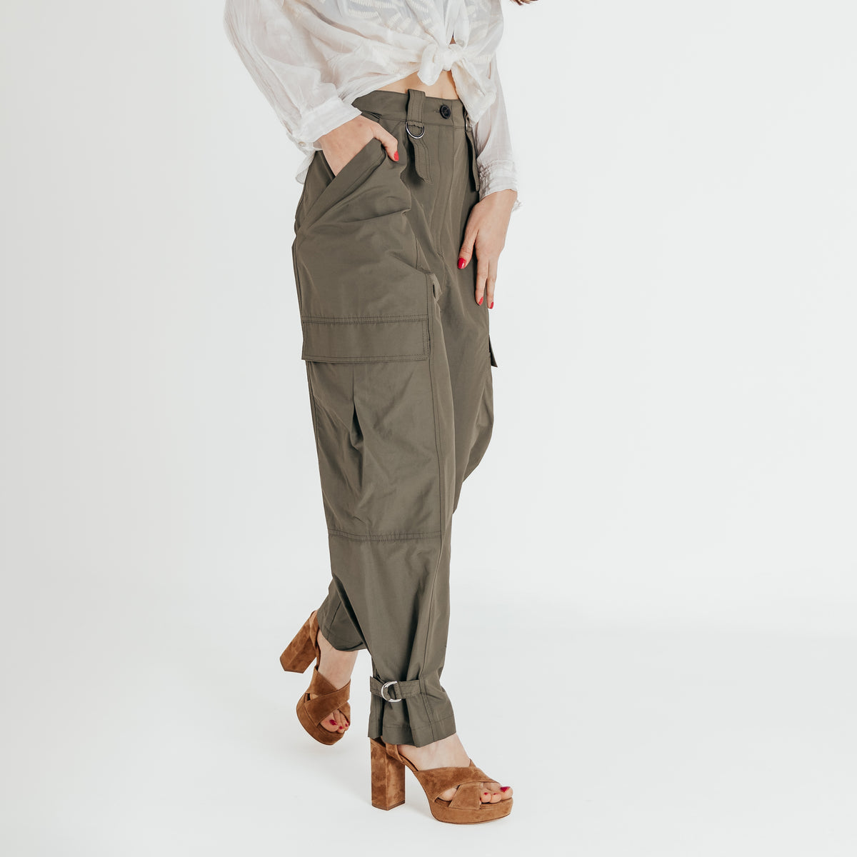 Pantalone cargo con tasche laterali e con fibbie regolabili nel gambale in fondo