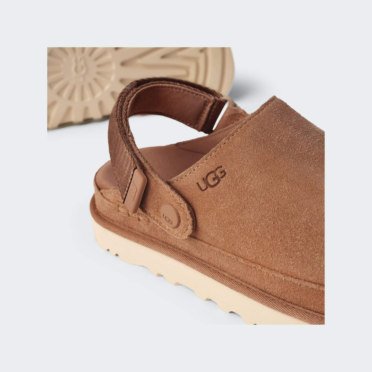 La UGG Goldenstar Clog in color chestnut porta la comodità iconica UGG in una versione trendy e versatile. Realizzata in morbido suede premium, presenta una fodera interna in microfibra che avvolge il piede con calore e leggerezza, mentre la soletta in EVA garantisce ammortizzazione a ogni passo. Il design a sabot con cinturino regolabile consente di indossarla sia come slip-on che con supporto al tallone, perfetta per adattarsi al tuo stile. La suola leggera e resistente assicura stabilità, rendendola ideale per look casual chic durante tutta la stagione autunno/inverno.